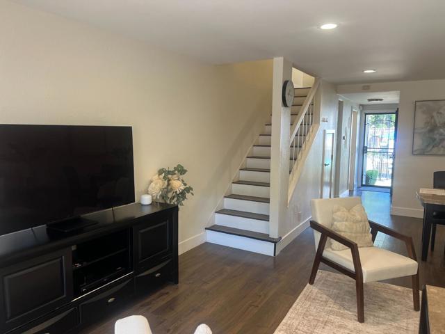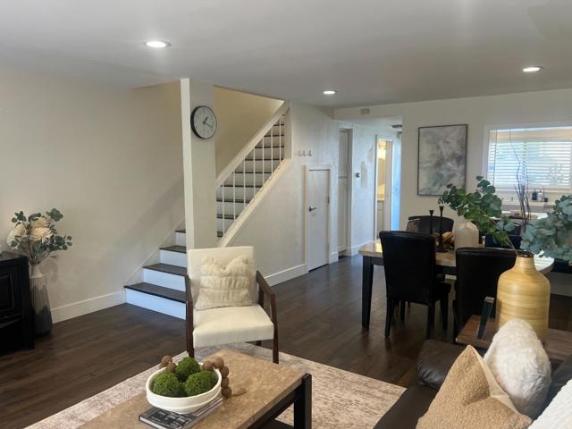 Welcome to this charming 2-bedroom, 1.5 bathroom condo located in beautiful Morgan Hill. Spanning 1,204 sq ft, this residence features a well-equipped kitchen with modern amenities including a garbage disposal, cooktop, oven, refrigerator and microwave. The open layout includes a dining area conveniently situated in the living room, as well as a dining bar for additional seating options. The home boasts durable laminate flooring throughout, enhancing the modern feel, while the central AC and central forced air heating provide year-round comfort. A cozy fireplace in the living room adds warmth and ambiance on cooler evenings. The property also includes a washer and dryer for your laundry needs. Walking distance to cute Morgan Hill and all the festivities, serene walking trails, make this home ideal. Also easy access to HWY for commuters. Close to beautiful winery's and walking distance to library.The backyard is low maintenance and private, also bedroom balcony. When it's hot you are steps to the pool to cool off. This home is perfect blend of functionality and comfort. Explore the opportunities this property provides and make it your new home today! Buyers please bring all offers! All offers will be considered . Seller's are very negotiable and ready to move!