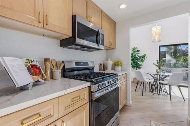 Beautifully updated condo in the desirable Willowbrook community, located just about a mile from New Brighton State Beach and minutes to Capitola Village. The remodeled kitchen features quartz countertops, a farmhouse sink, and modern finishes, complemented by luxury vinyl plank flooring throughout. The light-filled living room features soaring ceilings that create an open and inviting atmosphere. Three private patios provide great spaces for relaxing or entertaining, including one off the spacious primary suite with a large walk-in closet. The third bedroom is a versatile loft with its own patio and generous closet. Community amenities include a clubhouse, pool, spa, and tennis court. Includes a private detached one-car garage plus permitted parking. Conveniently located near Cabrillo College, the Cabrillo Farmers Market, The Farm Bakery, and offers easy access to Capitola Village, coastal trails, beaches, dining, and shopping.