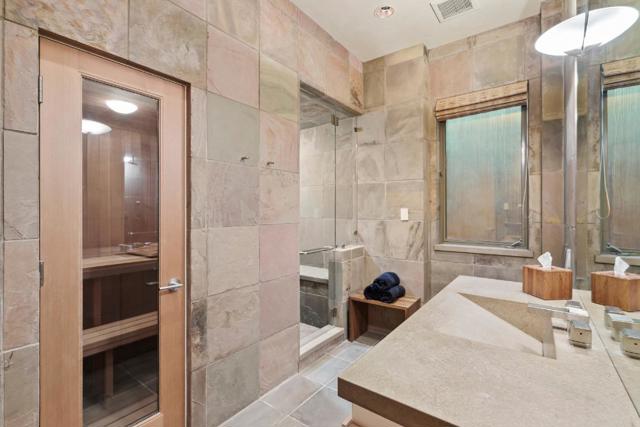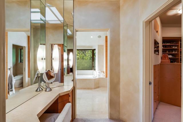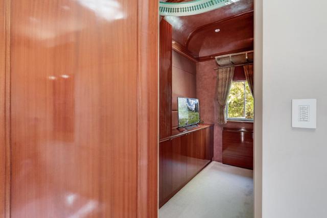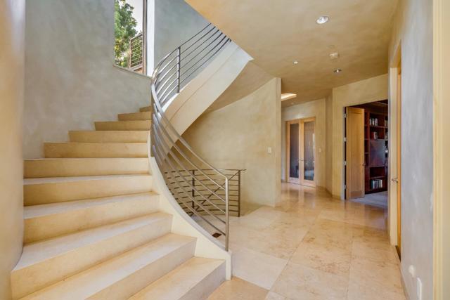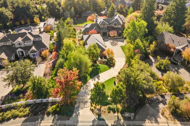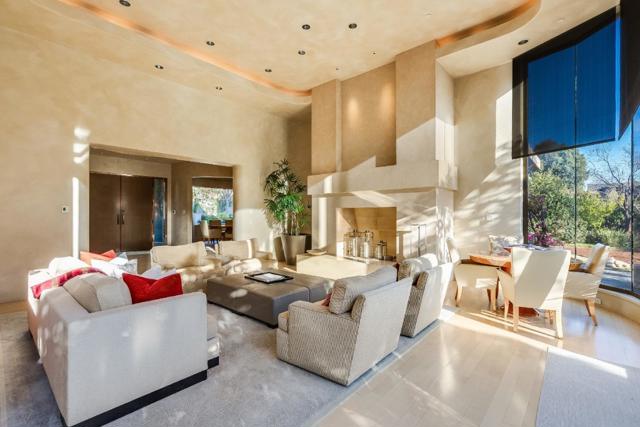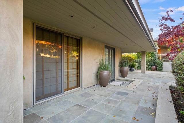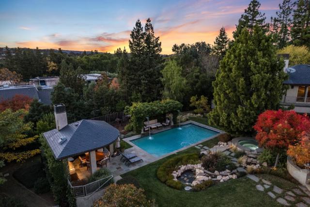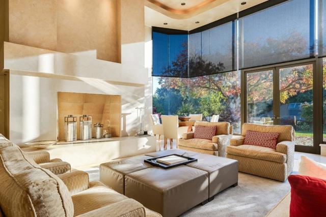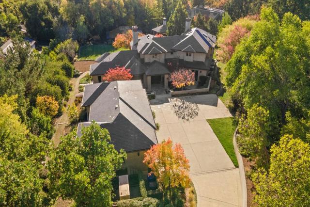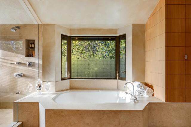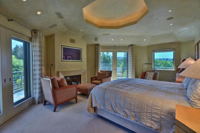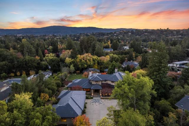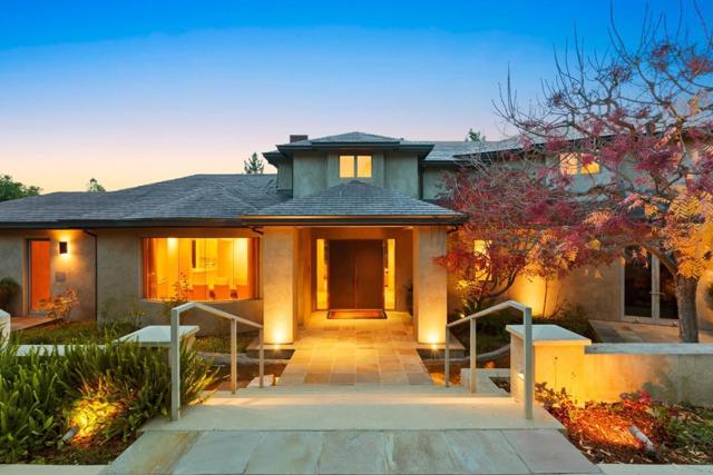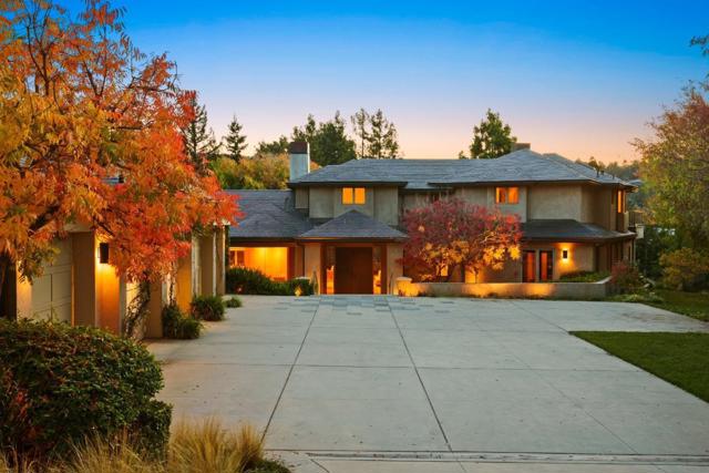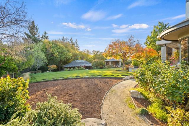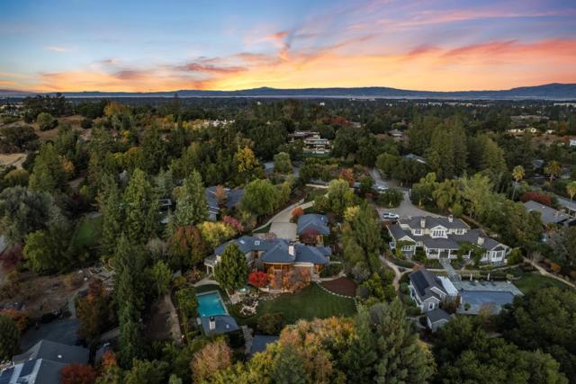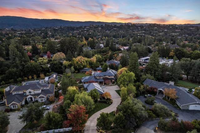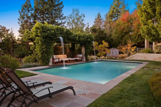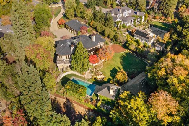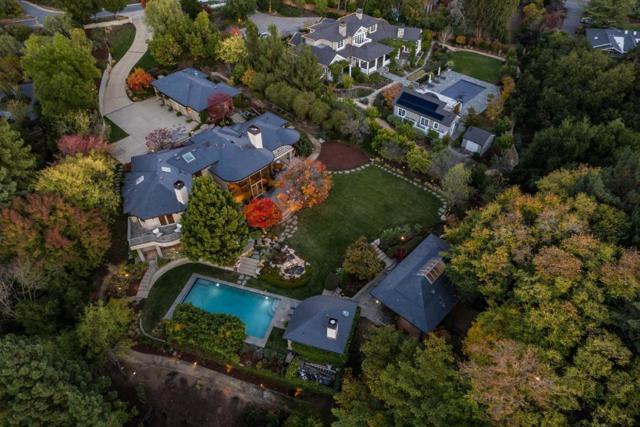 Contemporary masterpiece with 2-story guest house, pool pavilion, plus pool and spa on just over 1 acre of manicured gated grounds. Exotic woods of curly maple, pear, and Sapele mahogany complement maple and Halila limestone floors and counters in Brazilian granite and limestone. Graceful curves adorn walls, ceilings, windows, and cabinetry that maximizes storage. 5 bedrooms and 6.5 baths, library, lounge, full bar, 9-seat theatre, 2,000 bottle wine cellar, fitness center with steam & sauna, plus 2 offices one with secret Orient Express train car room with overhead train track that runs through both rooms. The guest house is designed in a Japanese teahouse style and the pavilion has a full kitchen for poolside entertaining. Meticulously landscaped grounds have many water features including streams, ponds, and waterfalls. Behind the scenes is home automation, security, whole-home backup generator, radiant heat & EV charging in the 5 car garage. Desirable cul-de-sac and close-in location. Excellent Los Altos schools.