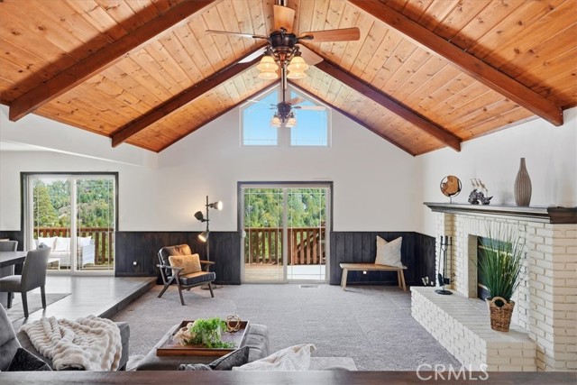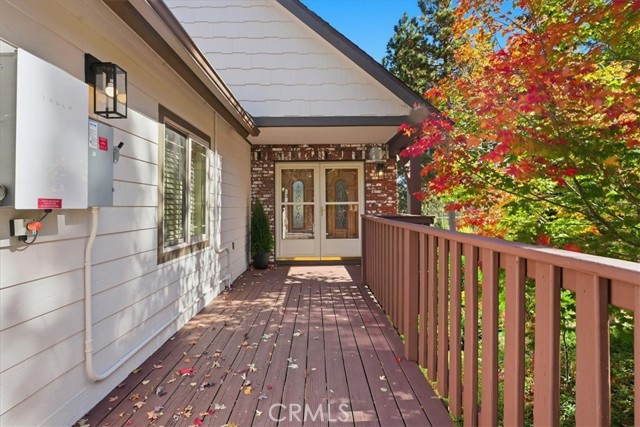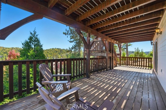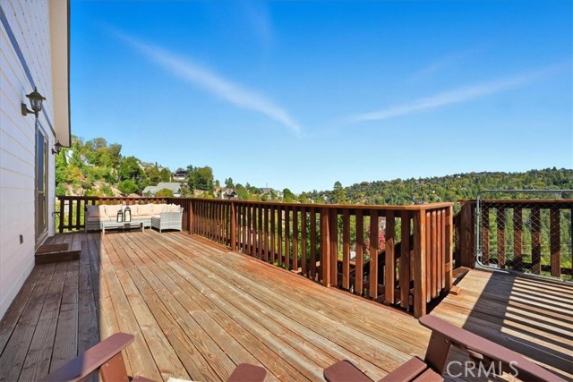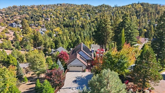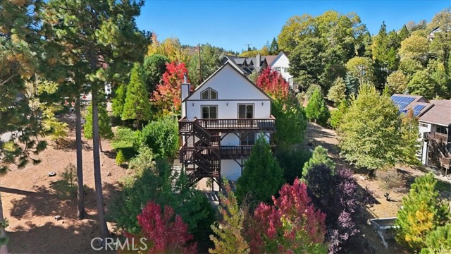 your DREAM MOUNTAIN HOME awaits in beautiful LAKE ARROWHEAD.. 3 bed / 2 bath / 1,896 sf.. located on an oversized DOUBLE lot of 19,168 sf.. paid SOLAR and LAKE RIGHTS.. over 135K IN UPGRADES.. this VIEW home will delight you with RUSTIC CHARM and sunlight.. gracious entry leads into a COZY family room w/ an oversized wood burning fireplace.. spacious dinning area w/plenty of room to entertain while enjoying majestic VIEWS from every angle.. CHEF'S KITCHEN w/large island.. CAFE appliances, upgraded cabinets, stone countertops, backsplash & coffee bar.. expansive back DECK will invite you to relax and take in the breathtaking views and mountain crisp air.. Master Bedroom suite has 2 closets, spa like bathroom w/tub and it's own private deck.. entry level and attached 2 car garage + RV parking make this home ideal for full time living or your mountain weekend retreat.. and if you're seeking an ALL YEAR ROUND outdoor lifestyle - this is it.. enjoy miles of biking, hiking trails, boating, fishing, swimming and waterskiing.. TESLA 57K SOLAR SYSTEM WILL BE FULLY PAID for.. home comes w/ a gas Generac Generator that will supply power when needed and a FORD CHARGE STATION PRO for your electric cars.. backyard is partially fenced off for pets.. close to town and shopping. THIS HOME IS A MUST SEE.. can be sold fully furnished.