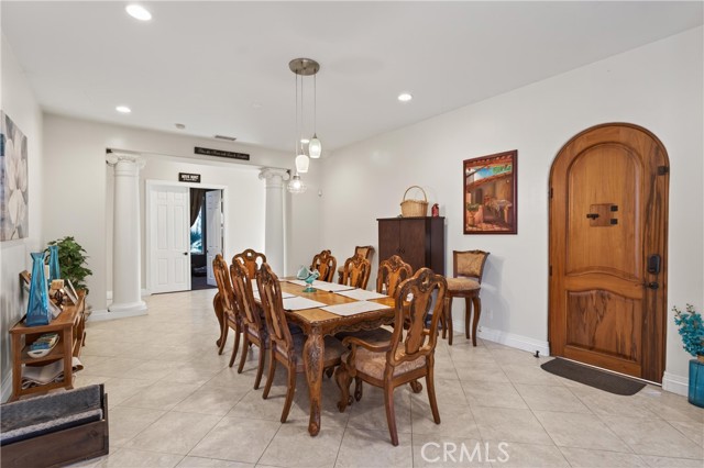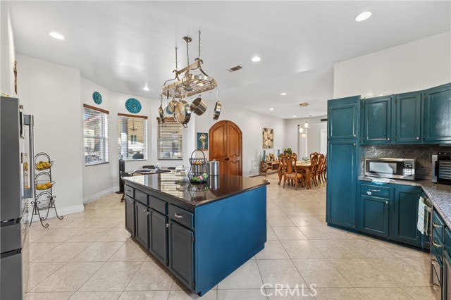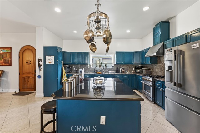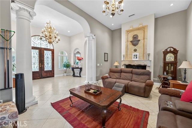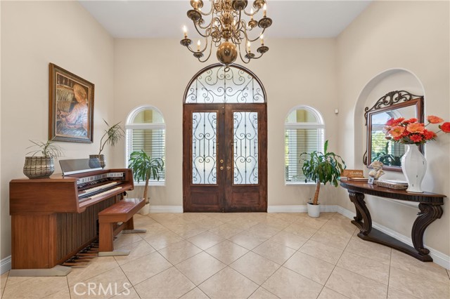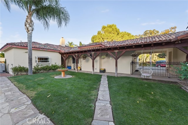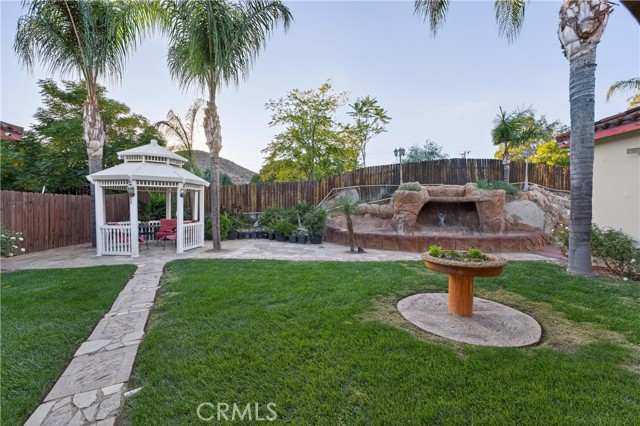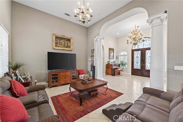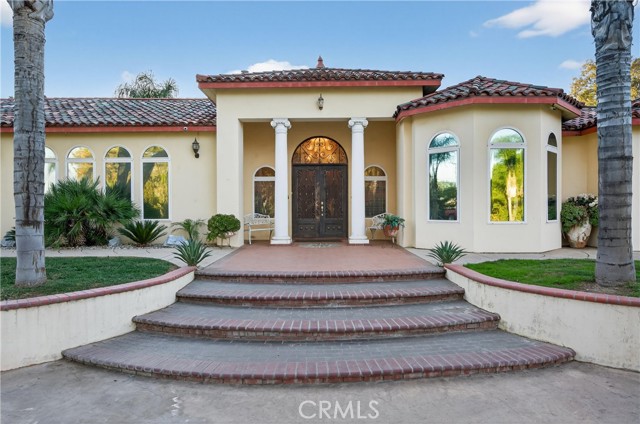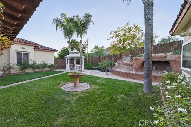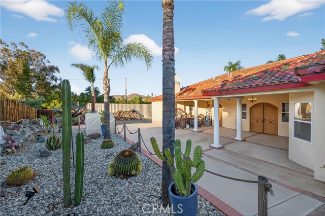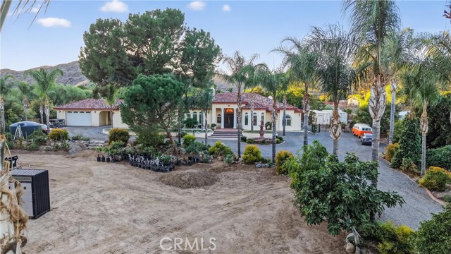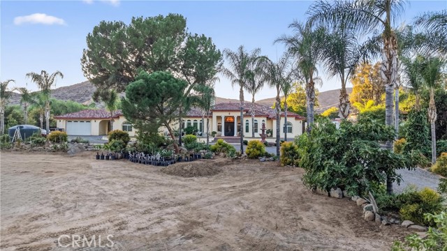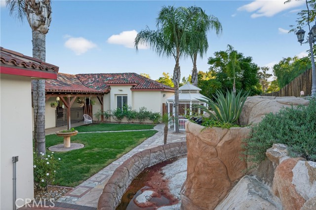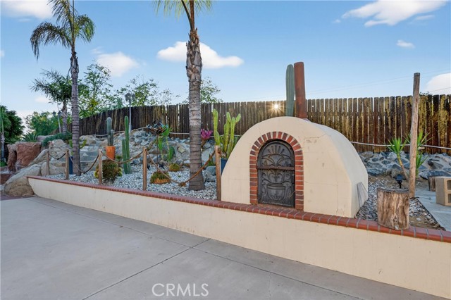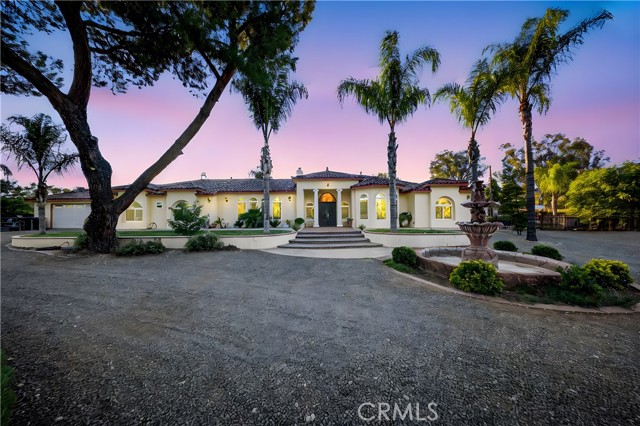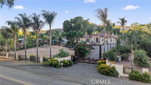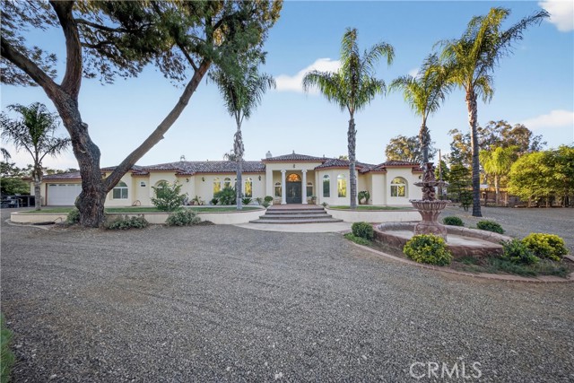 Welcome home to this beautiful ranch-style retreat nestled on 1.15 acres of private, gated land. A custom remote-control iron gate welcomes you into a property surrounded by palm trees, fruit trees, and plenty of space to park your RV, trailer, and all your desert toys. Step inside through elegant double doors and be greeted by high ceilings, recessed lighting, and dazzling chandeliers. The open floor plan seamlessly connects the spacious living areas, perfect for entertaining and family gatherings. The chef’s kitchen features a large center island, granite countertops, and ample cabinet space—ideal for both casual meals and hosting. This expansive home offers 5 bedrooms and 5 bathrooms, including a grand master suite with a spa-inspired bathroom featuring a custom walk-in shower, separate soaking tub, and an oversized walk-in closet with custom-built shelving and cabinets. Enjoy your favorite films in the dedicated theatre room, or use the large bonus room as a 6th bedroom , an office, or gym -whatever fits your lifestyle. A beautiful arched breezeway offers a relaxing transition between indoor and outdoor living while allowing natural airflow throughout the home. Step outside and relax in your very own backyard paradise. Stroll through the rose garden, unwind under the gazebo overlooking a serene waterfall fountain, or host unforgettable gatherings on the covered patio with recessed lighting and chandeliers. The custom outdoor pizza oven and fire pit area provide the perfect setting for cozy nights under the stars. Adding to the home’s impressive features, the property is equipped with its own private well and a 5,000-gallon water reservoir, used daily to water the lawn, trees, and plants—saving significantly on water costs. Stay cool year-round with two 5-ton AC units, and bring all your vehicles, tools, and toys into the 6-car garage, measuring approximately 47 feet long by 25 feet wide—perfect for a workshop or ultimate car enthusiast’s space. Don’t miss your chance to own this one-of-a-kind estate, offering comfort, elegance, and endless space to live, play, and entertain.