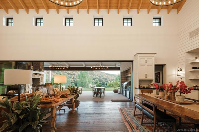 Nestled in the rugged backcountry of East San Diego County, Red Cloud Ranch is a rare sanctuary where modern luxury meets natural beauty. Spanning approx. 388 acres of rolling fields, vibrant oat hay, and serene landscapes, the property feels worlds away—yet is less than an hour from the coast. The property shimmers under the mountain sun, setting the stage for a life of privacy, recreation, and timeless California living. Completed in 2018 by master builder Greg Agee and architect John Jensen, the main residence is a showcase of design and craftsmanship. At approx. 6,500 sq. ft., soaring 20-foot ceilings, six bedrooms, five bathrooms, a media room, custom lighting and storage, and a three-car garage, the home captures sweeping views of the Santa Ysabel Mountains. Light-filled interiors blend seamlessly with the outdoors, while a resort-style pool and spa, spanning 55 feet, solar-heated with an automatic cover, invites year-round relaxation. Multiple fireplaces and firepits create the perfect backdrop for gatherings large and small. Beyond the residence, the property transforms into an extraordinary retreat for recreation and entertaining. A full-size pickleball court, cowboy croquet, organic garden, and chicken coop bring both playfulness and practicality. The one-of-a-kind “Miner’s Village” along the creek—complete with stage—offers a magical setting for live music, performances, or private celebrations. Guests can fish or kayak at Blackberry Pond, which is approximately .5 acres at a 20 foot depth at its fullest, or head to the shooting range, outfitted with multiple.. benches for both training and sport. At the social core of the ranch, the 2,000+ sq. ft. Party Barn sets the scene for weddings, concerts, or spirited gatherings. With soaring ceilings, dramatic chandeliers, and dedicated restrooms, it is equally suited to elegant occasions or rustic celebrations. A separate 1,200 sq. ft. manager’s residence with three bedrooms and two bathrooms provides flexible accommodations for staff, family, or guests, while an RV/storage structure adds further utility. For equestrian and agricultural pursuits, the estate offers a four-stall horse barn, hay barn, and thriving orchard, boasting peaches, nectarines, plums and apricots. Five active wells producing 5-60 gallons/min, 55,000 gallons of water storage, and on-site gas, diesel, propane storage, 1,500 sq. ft. workshop and 3,000 sq.ft. equipment storage, ensure operational independence across hundreds of acres. Red Cloud Ranch is as self-sufficient as it is versatile, with infrastructure supporting everything from recreation and farming to hospitality and conservation. Located just minutes from the historic mountain town of Julian, the ranch offers the perfect balance of seclusion and connection. Whether envisioned as a private family retreat, a luxury event venue, or a generational legacy, Red Cloud Ranch is more than a property—it is an experience, a lifestyle, and a place to write your story.