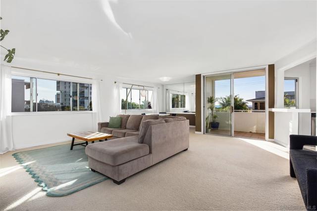 A Love Letter to 2701 2nd Avenue: Tucked into the heart of Bankers Hill on a quiet dead-end block with minimal traffic, this is the “quiet” city living everyone is searching for. The largest one-bedroom condo downtown, this home offers a huge open layout plus an additional flex space perfect for dining, a home office, or even a second sleeping area. With coveted south and west exposure, south-facing windows in every room fill the space with natural light, while ocean, bay, city, and sunset views create a stunning backdrop to daily life. The upgraded kitchen features sleek white cabinetry and quartz countertops that flow seamlessly into the living space, and the remodeled bathroom adds a fresh, modern touch. Enjoy secure parking for two vehicles plus ample garage storage — a rare city convenience. Just down the block you’ll find a neighborhood park, with Maple Canyon Trail and Balboa Park’s trail system both within a 5–10 minute walk. With new paid parking at Balboa Park, the ability to walk there is more valuable than ever, and you’re also ideally located near the energy of Little Italy and Hillcrest, with coffee shops and restaurants galore in all the surrounding area. Close to the 1st Avenue Bridge and surrounded by incredible walkability, this home offers refined urban living with a peaceful, scenic soul.