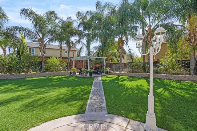 This stunning home offers the perfect blend of comfort, space, and curb appeal. The front yard features low-maintenance artificial turf, giving it a clean and modern look year-round. Step into the spacious backyard, a true outdoor retreat with lush turf surrounded by mature palm trees, creating a private, resort-like atmosphere that’s ideal for entertaining or relaxing. Inside, you’ll find a well-designed floor plan that includes four bedrooms, two of which have their own private bathrooms, perfect for added comfort and privacy. The home also features a bedroom on the main floor, ideal for guests, multi-generational living, or a home office setup. Additional highlights include RV access, giving you plenty of space for your recreational vehicles or extra parking. Located in a desirable Moreno Valley neighborhood, this home combines functionality, style, and beautiful outdoor living ready for its next owner to enjoy.