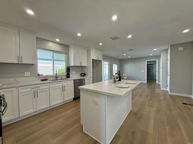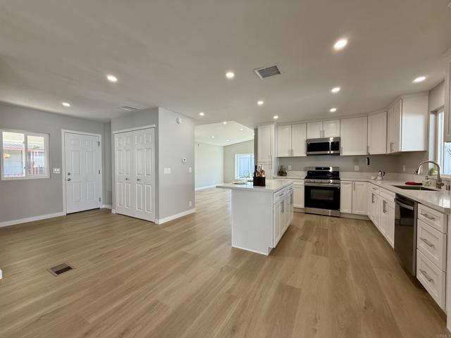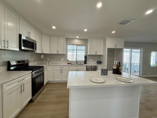Resort like senior (55+) Five Star park with 8 lakes and acres of luscious green belts! Unit is nicely upgraded, very clean! NOT ON TAX ROLLS AND ON RENT CONTROL keep your payments low and stable. Park has year round heated pool and spa, tennis/pickle ball court, clay room with kiln/pottery wheel, library, pool tables, card rooms, shuffle ball courts and huge club house with ball room for parties. It's close to sandy beaches and oceanside pier (about 4 miles). Grocery stores, restaurants, medical services and shopping centers close by. Upgrades include Dual Pane windows, Interior Drywall, Large Kitchen remodeled which includes Recessed Lighting, Quartz like Counter tops, New kitchen Cabinets, Bathrooms have New Plumbing Fixtures, new tub and enclosure. Gorgeous Laminate Flooring Throughout the home! Tons of value here for the money. Come and take a look! ! VERY LARGE YARD!!! LOTS OF PRIVACY!!!