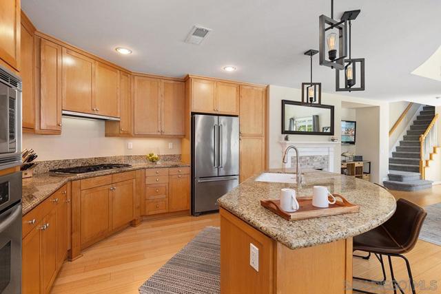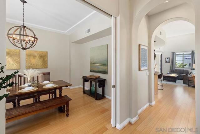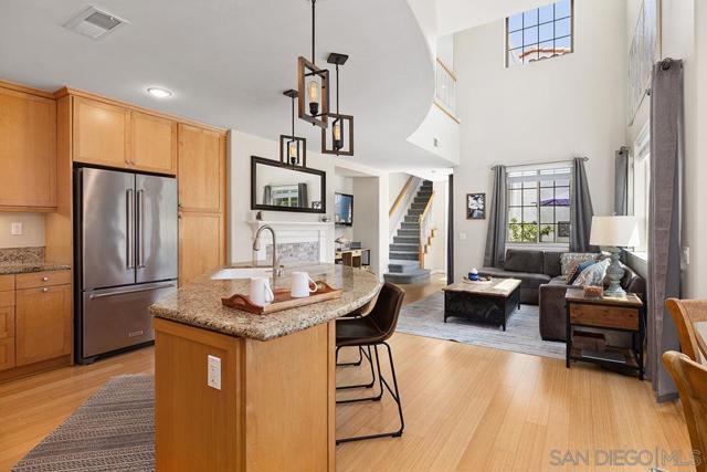 One of only four Beacon Point Plan Homes on the Liberty Station Promenade!!! The Beacon Point Homes that are on the Promenade have the length of their home on the Promenade which gives them a longer expanse of the coveted Promenade to look out and walk onto through your own Private Gate from your good Sized Yard with a 5.5Ft Privacy Fence. Some of the Features and Upgrades include and Open Floor Plan, Light Bamboo Flooring Downstairs and Upstairs, Kitchen including Granite Countertops, Upgraded Light Maple Cabinetry throughout Home, Pull-Outs, All Stainless Steel Appliances including a KitchenAid Fridge, Newer Kitchen Island Lighting, Exterior Painted in 2021, New AC in 2021, New Water Heater in 2020, Stone FPL Surround, New Logs in FPL, Jetted Oval Tub in MSTR Bathroom with a Separate Shower, Butcher Block Counter added in Laundry Room, New Light Fixtures in Entry and Formal Dining Room, Dimmers Added to Light Switches in Formal DR, Breakfast Area, Kitchen Island and Under Cabinet Lights in Kitchen, Downstairs Powder Room has New Flooring and a New Sink Pedestal, Pre-Plumbed for a Soft Water Hook-up and Pre-Plumbed for a Gas Line for BBQ in Yard, Ceiling Fans in all Bedrooms, Alarm System, High-Loft Ceiling Storage in 2 car Attached Garage. Located in the Walking Village of Liberty Station with a 46 Acre Water Front Park, The Lot Movie Theater, The Loma Club 9-Hole Executive Golf Course, The Rock Church, High Tech Schools, Trader Joes, Vons, LS Public Market, Arts and Cultural District, and Sooo much More!