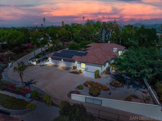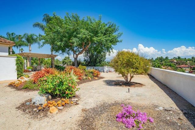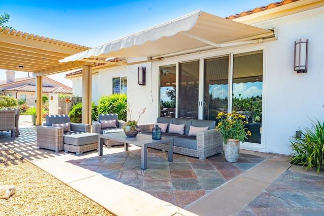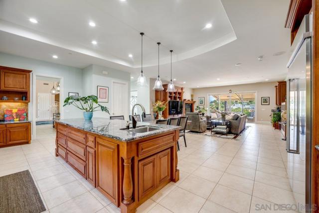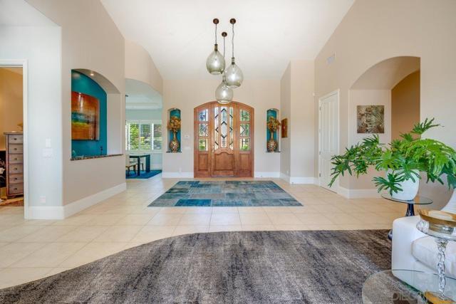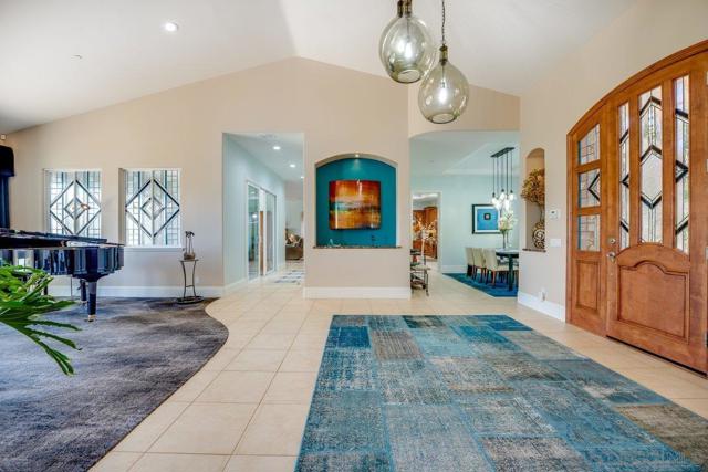 Love where you Live! Chef's Dream Kitchen & Entertainer’s Paradise: The heart of the home is the state-of-the-art professional kitchen, equipped with high-end built-in appliances, granite countertops, and a large central island perfect for both prep work and entertaining. A built-in wet bar and entertainment center complement the inviting living areas. Sustainable Living: This eco-conscious estate includes paid solar, keeping utility costs exceptionally low. Additional green features include a reverse osmosis system, water softener, and central vacuum. Privacy & Security: Secluded and fully fenced, the property is accessible through a security gate and stucco walls, ensuring ultimate privacy. The grounds are meticulously landscaped with drought-tolerant plants, a variety of fruit trees—including avocado, fig, tangerine, walnut, guava, persimmon and apple— fully irrigated for ease of maintenance. Additional Features: • Oversized four-car garage with built-in cabinetry and an electric car charger • Newly designed exercise/yoga room • Whole-house fire sprinklers • Covered stucco exterior eaves for added durability This property is an exceptional blend of luxury, convenience, and sustainability, offering a rare opportunity to live in the highly sought-after area near Fallbrook Winery. A must see!