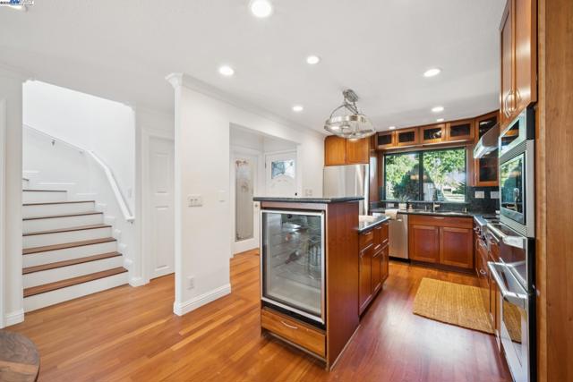 PRICE REDUCTION! TRANSPARENT PRICE at $890K! 1083 Melrose Avenue is a tastefully updated townhome located on Alameda's Bay Farm Island. This 3 bedroom, 2.5 bath, 1,642 sq. ft property in the Garden Isle Community is stunning both inside and out. This remarkable home features wood floors, crown moulding, tankless water heater, heat pump powered heating and A/C, and EV charging outlet. The open floorplan allows the light to shine from the updated Chef’s Kitchen with its wine fridge, Thermador and Wolf appliances to the spacious living room with custom stone fireplace flanked by double paned Anderson sliders. A lovely 1/2 bath and convenient laundry room with ample storage complete the 1st floor. Upstairs, the 2nd Floor is anchored by the extra-spacious primary suite with ample space for an office or sitting area. This ensuite is complete with an updated bathroom and large walk-in closet. Down the hall, 2 sunny bedrooms & an updated full bath create a comfortable layout. The tranquil yard includes a storage shed and trex-style decking. The large 2 car garage is a versatile space for workshop, storage and parking. Located across the street from the sparkling Community Pool, this property is also close to Top Performing Schools, SF Ferry, shops, restaurants, and walk/bike trails!
