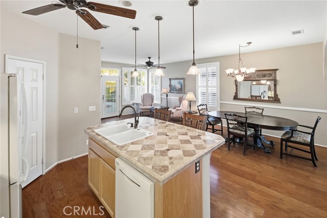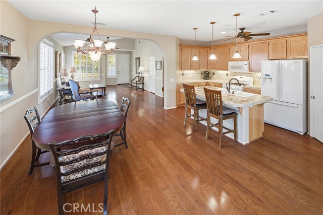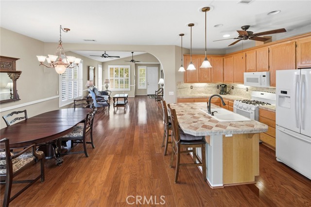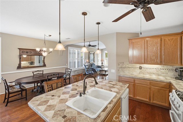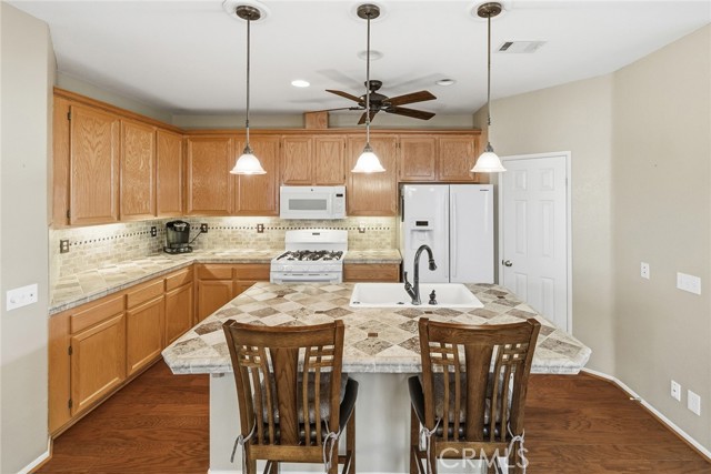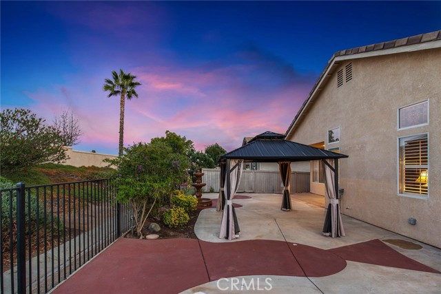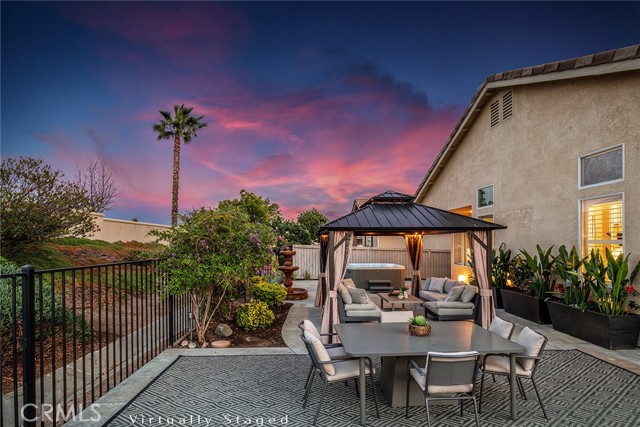 Embrace a life of comfort, connection, and relaxation in this beautifully maintained home located in The Oasis, one of Menifee’s most sought-after 55+ gated communities. Bright, open living spaces flow effortlessly for everyday enjoyment and easy entertaining, while the private backyard offers a peaceful retreat complete with 220-volt power ready for your spa—perfect for unwinding beneath the stars. This inviting home features thoughtful details throughout, including a cozy gas fireplace, central heating and air conditioning, and ceiling fans for year-round comfort. Plantation shutters, Bruce hardwood flooring, and custom transom and French doors add an elegant touch. The well-appointed kitchen includes custom countertops, under-cabinet lighting, a like-new dishwasher and double oven, and plenty of space to cook, dine, and gather. A tankless water heater ensures efficiency, and generous walk-in closets provide ample storage. Step outside to enjoy the newly enhanced backyard featuring an electrified pergola with mosquito netting and privacy curtains—ideal for relaxing afternoons or hosting friends. A gentle fountain adds a touch of tranquility, while new drip sprinklers and a fully fenced yard keep the outdoor space lush and low-maintenance. The two-car garage includes custom cabinets, offering convenience and organization for tools and hobbies. Both front and back security doors provide peace of mind. At The Oasis, neighbors become friends and every day feels like a getaway. The vibrant clubhouse offers a fitness center, library, hobby rooms, billiards, and a ballroom for community events. Outdoors, residents enjoy a sparkling pool and spa, barbecue area, tennis and pickleball courts, and beautifully landscaped walking paths. Enjoy a carefree lifestyle with front-yard care and common-area maintenance included—giving you more time to explore local golf courses, nearby wineries, and scenic mountain trails. Conveniently located close to shopping, dining, medical services, the Menifee fire station, and the community dog park, this home offers the best of Southern California’s relaxed and welcoming lifestyle.