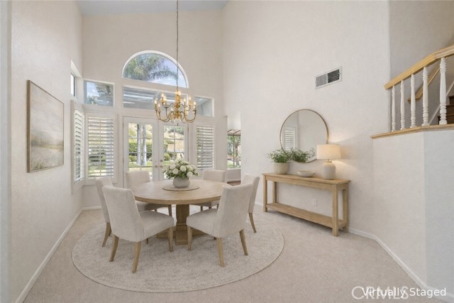 Beautifully maintained 5-bedroom, 3-bath residence located in the highly sought-after East Highland Ranch community, offering an exceptional blend of comfort, space, and elevated living. Thoughtfully designed with a spacious and functional floor plan, this home presents a refined opportunity for both immediate enjoyment and future customization. Freshly painted interiors create a light and sophisticated ambiance, complemented by brand new carpeting in the formal living and dining rooms as well as throughout the upper level. A newly installed HVAC system (2025) provides enhanced energy efficiency and year-round comfort. The well-appointed kitchen features a desirable walk-in pantry and flows effortlessly into the main living areas, ideal for both everyday living and entertaining. Two sets of French doors enhance the home’s indoor-outdoor connection, bringing in natural light and adding architectural charm. The versatile layout includes a main-level bedroom and full bath, ideal for guests, multigenerational living, or a private office. Upstairs, the primary suite offers a spacious retreat with a walk-in closet and en-suite bath. Additional highlights include a large interior laundry room complete with a utility sink and ample storage, along with an expansive 3-car garage providing excellent functionality and storage options. Set on a generously sized lot, the property offers extensive usable outdoor space—perfect for entertaining, relaxing, or creating a custom backyard retreat. The sloped portion of the yard is adorned with two mature avocado trees, adding a touch of natural beauty and character. Residents of East Highland Ranch enjoy access to resort-style amenities, including multiple pools and spas, a clubhouse, scenic walking trails, parks, and a private lake, creating a true sense of community and lifestyle. A rare opportunity to own a well-appointed home in one of the area’s most desirable communities.
