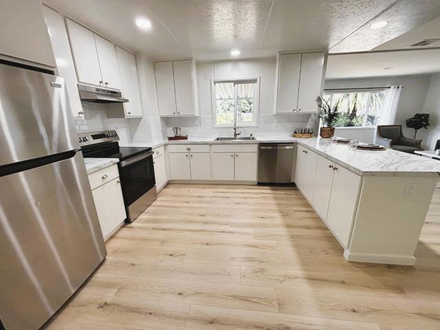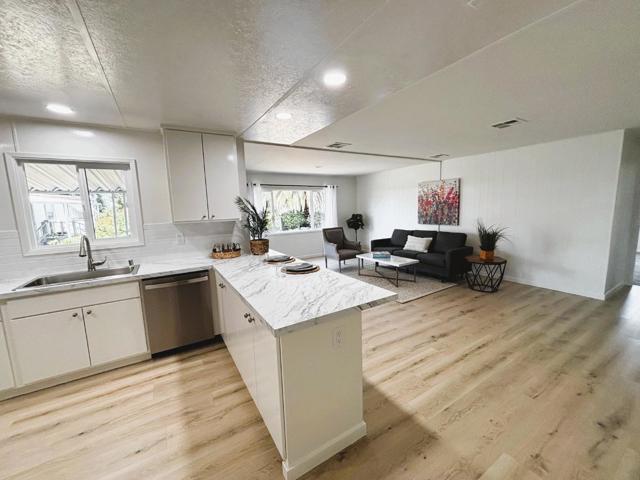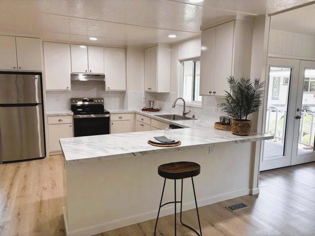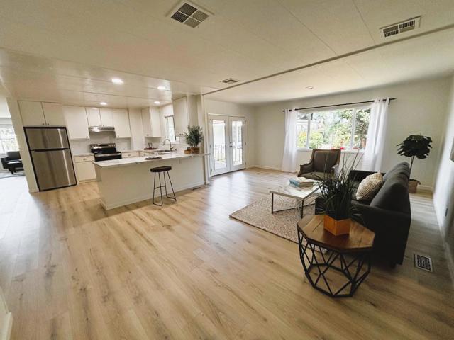 Rare find: Fully remodeled TRIPLE WIDE mobile home on a huge lot! No Property Taxes! Low Space Rent! Check out the open-floor plan kitchen and family room with all white cabinetry, stainless steel appliances, and charming breakfast bar. The living room is spacious with large windows for great light. Gorgeous laminate flooring throughout and then warm carpet in the bedrooms. Two bathrooms with charming cabinetry, shower and tub. Walk-in Closet in primary bedroom. Double Pane windows. Freshly painted inside and out. Outside you'll find a large deck and huge backyard! Plenty of room for a pet to fully enjoy. Just a quick walk to the community pool and club house. Located in the highly desirable Senior Park, Spanish Ranch Two. Buyers must be 55 years or older and qualify at the park. Close to Bart & other public transportation. Space rent $737/month.