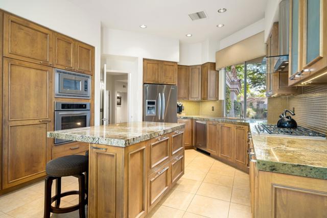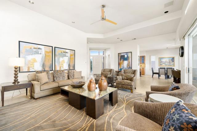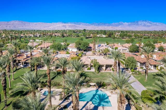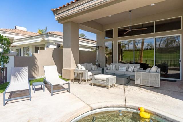 Rental Available May 15 - October 15, 2026 at $3,200 /month + utilities. Welcome to your desert oasis at Indian Ridge Country Club in Palm Desert. This stunning 3-bedroom, 3.5-bathroom home offers luxury living with custom solar shades, soaring 9ft+ ceilings, and breathtaking panoramic views of the Arnold Palmer Grove-3 Golf Course and surrounding mountains. The west-facing patio is perfect for entertaining, featuring a pebble-tech heated spool, fire pit, and BBQ area. Inside, the gourmet kitchen shines with stainless steel appliances and a spacious island, ideal for preparing and enjoying meals. The master suite is a true retreat with dual walk-in closets, a soaking tub, and a separate shower. Two ensuite guest bedrooms provide privacy and comfort for family or friends. A landlord's club membership is available with approval to enjoy exclusive community amenities, including a fitness center, pools, tennis courts, pickleball courts, and exceptional dining. Located in the heart of the Palm Springs area, you're just minutes from El Paseo shopping and dining and a short drive to the airport. Don't miss this exceptional opportunity to experience luxury desert living!