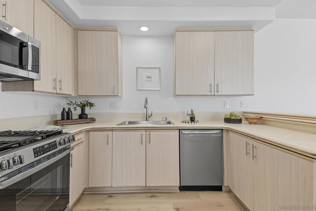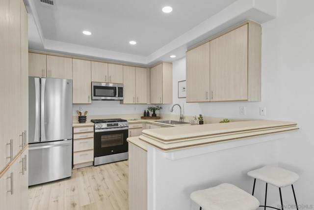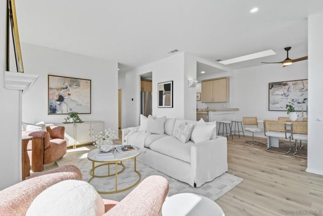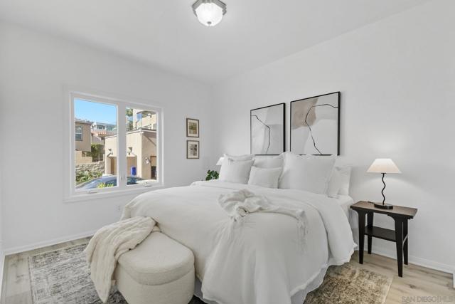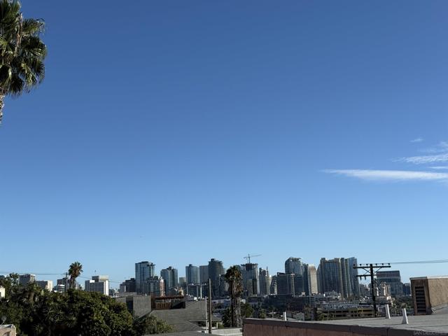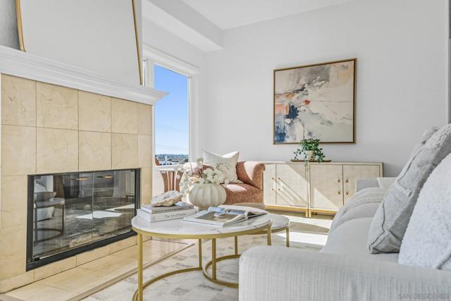 This updated corner condo offers features you rarely find in one place: panoramic views of the bay and downtown skyline, a private two car garage with a large bonus room, high ceilings, and abundant natural light. From the moment you step inside, the sense of openness is undeniable. Walls of windows frame the harbor and cityscape, while the living room with its cozy fireplace flows into a bright layout in a boutique community of just 12 homes. As a corner end unit, it also provides a private entrance, and its southwestern exposure fills the home with sunlight throughout the day. The two bedroom, two bath floor plan is practical and inviting, with a primary suite designed to take in the views and an en suite bath that includes a jacuzzi tub for unwinding after a long day. The kitchen and dining area connect easily, enhanced by a skylight that makes the space feel warm and bright. The private garage is another rare highlight, offering secure parking plus an oversized bonus room ready to become a gym, art studio, wine cellar, workshop, or the storage space you never thought possible in a condo. Low HOA dues and a pet friendly policy that allows two pets of any size make the home even more appealing. Just blocks from neighborhood favorites like The Starlite, Aero Club, Shakespeare’s Pub, El Indio, and Gelato Vero, and minutes from Little Italy, Bankers Hill, Balboa Park, and the San Diego Bayfront, this residence combines the energy of city living with the peace and charm of a small, well kept community.