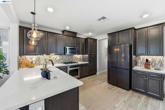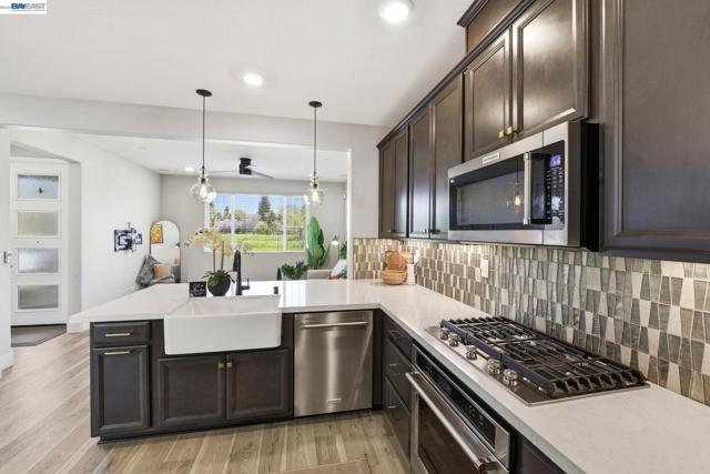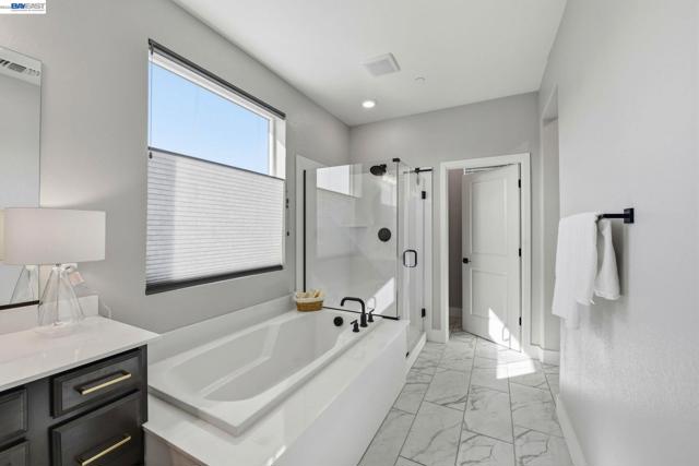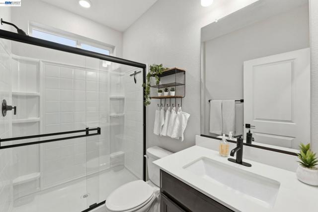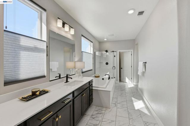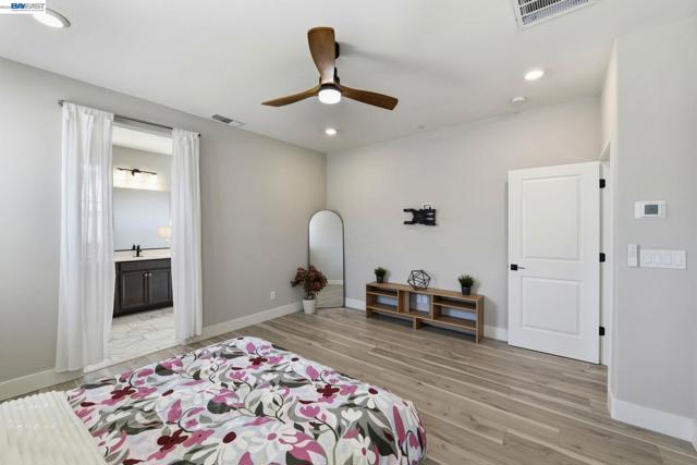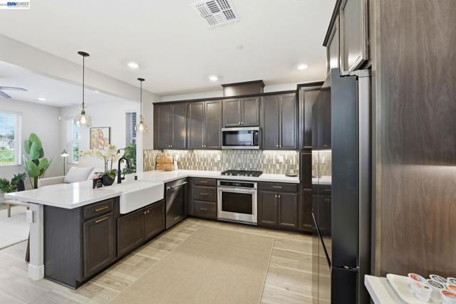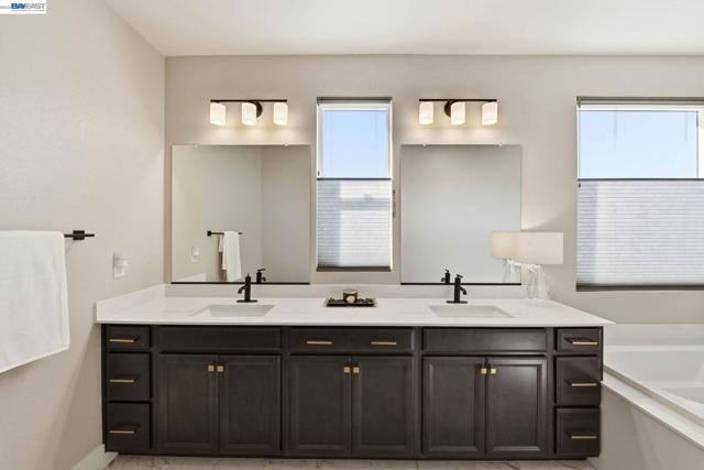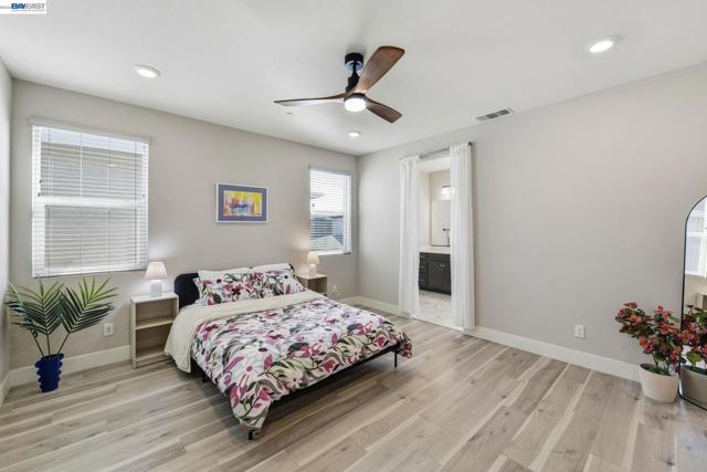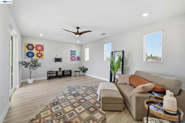 Contemporary living at The Cove! Welcome to this bright and inviting 3-bedroom, 3-bath home spanning 2,238 sq ft in one of Natomas' finest master-planned communities. Almost-new construction w/ $70K+ upgrades throughout and ready for immediate move-in!The main level features a sunlit living room w/window-lined walls, stunning wood-themed flooring, recessed lighting, and integrated speakers. A first-floor bedroom with full bath and attached patio provides flexibility for guests or multi-generational living. The kitchen showcases quartz countertops, full-height backsplash, island w/sink and breakfast area, professional-grade stainless steel appliances, and abundant cabinetry. The dining area opens seamlessly to the large landscaped backyard with an artificial grass area perfect for entertaining or relaxing.Upstairs, plush carpeting on the stairs leads to an oversized loft with fantastic local views and private balcony overlooking the backyard; perfect for watching the sunset. The luxurious primary suite offers a serene retreat with ensuite bathroom featuring double sinks, separate shower stall, soaking tub, and huge walk-in closet. Upstairs laundry room with sink adds functionality. Solar owned. Low HOA incl. The Cove Cornerstone clubhouse with in/outdoor gymJunior Olympic Pool.