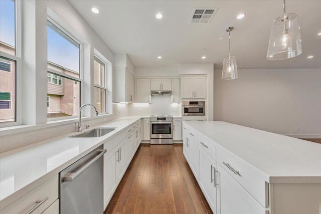 This Towns Plan 1 home at City Village by SummerHill Homes is available for quick move-in and features 3 bedrooms, 3.5 bathrooms, a 2-car side-by-side garage, quartz countertops, Bosch stainless steel appliances, and a deck off the family room. The first floor includes a bedroom with a private bath perfect for guests or as an office. Both the primary and secondary bedrooms offer spacious walk-in closets, and energy-efficient Solar panels can be leased or owned. City Village offers 404 stylish residences and a 2-acre public park with biking and walking paths, seating areas, and a shared community BBQ. Located near San Ramons City Walk neighborhood, the community is within walking distance to City Centers restaurants, shops, and theaters, with easy access to schools, work, and public transit. Nearby attractions include City Center Restaurants & Retail, Bridges Golf Club, and the Iron Horse Trail. Please note: the exterior image shows the model home; interior photos are of a model home.