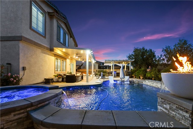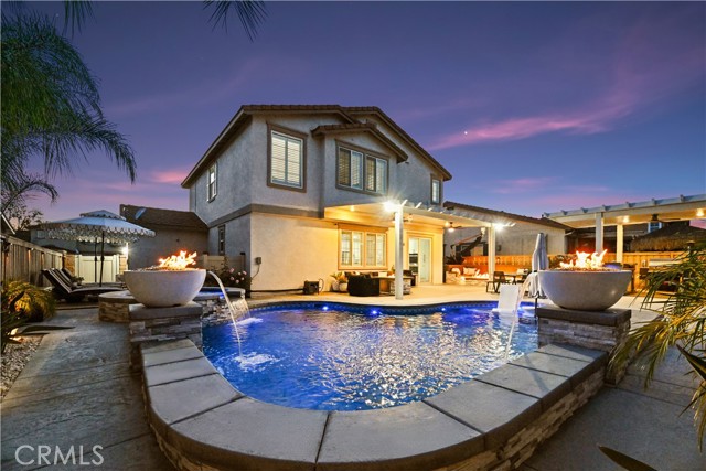 Located in The Lakes in Menifee, This home offers a rare combination of major system upgrades, modern interior finishes, and a true resort style backyard designed for everyday living and entertaining. This home has been extensively improved over the past few years, giving buyers peace of mind and a move in ready experience with minimal deferred maintenance. The exterior was completely repainted a few short years ago, enhancing curb appeal and overall presentation. Additional exterior improvements include Govee permanent lighting, added sidewalk and stairs, and a widened driveway for improved functionality and parking. Inside, the home features a fully remodeled kitchen creating a modern and inviting space for cooking and gathering. All flooring throughout the home has been replaced, providing a fresh, cohesive feel from room to room. Major mechanical upgrades have already been handled, including a full A/C and furnace replacement, along with a tankless water heater. A dedicated A/C unit was also added to the garage offering additional comfort and flexibility for workspace or storage use. The backyard is truly the centerpiece of the property. Designed with no expense spared and no corners cut, it features a custom pool with water features, fire bowls, and spa, along with a sun tanning and lounge area built for relaxation. The outdoor kitchen and fire pit area create the perfect setting for entertaining, while a designated dog relief area adds thoughtful functionality. Residents of The Lakes enjoy access to resort style amenities including multiple lakes, walking trails, a clubhouse, pools, fitness center, parks, and more. This is an opportunity to own a home where the big ticket upgrades are already complete and the lifestyle speaks for itself. Come see this property for yourself!