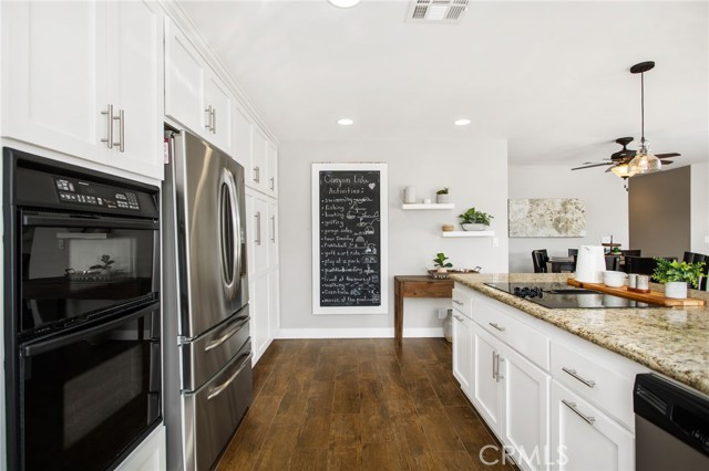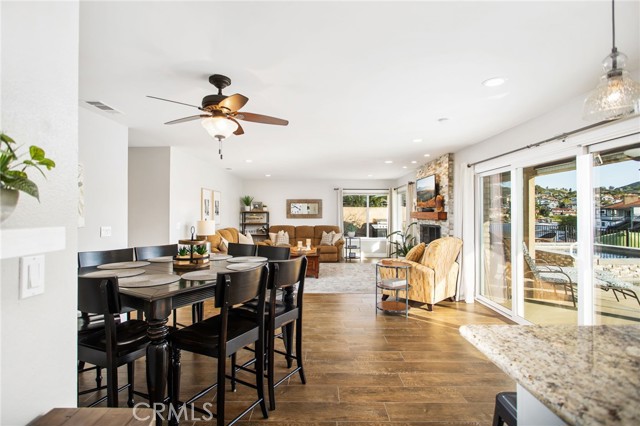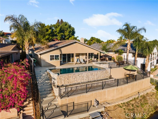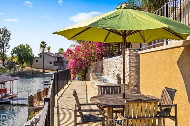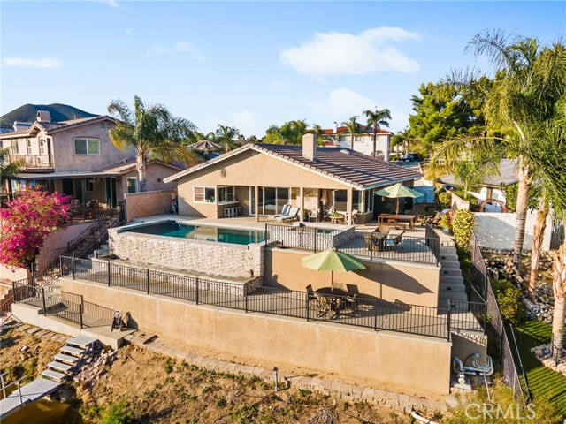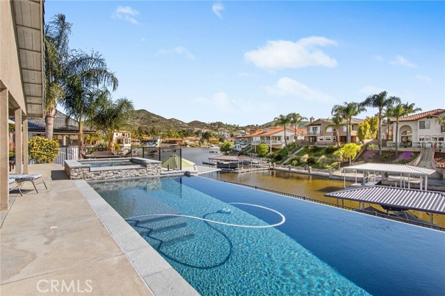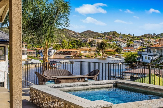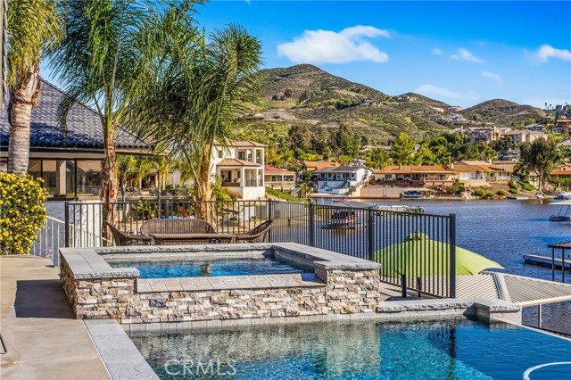 Discover affordable luxury at its finest in this stunning move in ready WATERFRONT POOL HOME (fully remodeled in 2019), with 3 bedrooms, 2 bathrooms and is perfectly situated on a prime section of the East Bay near the channel. Don't let the square footage fool you, this home has a great layout and feels bigger than what's on paper. This exquisite property boasts a fully remodeled interior, with dual paned windows and new slider, new wood like tile flooring throughout the entire home, updated kitchen and bathrooms and is extremely well laid out. The living room and kitchen are light and bright with tons of windows, and features beautiful views overlooking the infinity edge pool and spa and is west facing with beautiful sunsets! Outside, the real allure of this home shines, with multiple spaces for entertainment and a private dock with a cover and lift. You can paddle board or swim right from the dock, or cruise out to the main lake in a matter of minutes for wakeboarding and waterskiing. Inside the home has fully updated bathrooms with newer cabinets and countertops, kitchen has also been updated with newer cabinets, countertops and fixtures and boasts a beautiful view from the corner kitchen window (so doing dishes is less of a chore) and a pass through window. The home is finished well with ceiling fans and high end blinds in every room and can be sold fully furnished! The flat driveway provides easy access and ample parking. Come and enjoy the best there is to offer with Canyon Lakes lifestyle! Canyon Lake is a 24 hour guard gated community with a private 525 acre lake, premiere wakeboarding and waterskiing, 18 hole SCGA rated golf course, Lakefront pool and clubhouse, pickleball, waterfront tennis courts, campgrounds, baseball fields, parks & beaches, an amphitheater, docks, over 50 clubs and endless entertainment. Call today for your private showing.