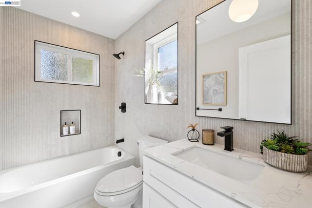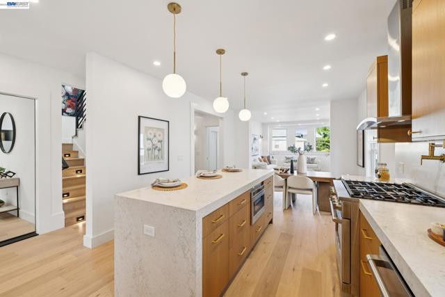Reimagined in a modern farmhouse style, this rare Lower Elmwood compound offers flexibility, style, and opportunity across three distinct, fully rebuilt living spaces totaling 3439 square feet. Ideal for multigenerational living (main house, au pair/private office, and detached 2-bedroom guest house), income, or room to grow, the property balances connection, privacy, and ease. The main home (3BD/3.5BA, 2212 sq ft) is filled with natural light and designed for both everyday living and gathering. From the front sitting room with bay window to the dining area and into the chef’s kitchen and family room, the flow feels effortless, with oak flooring throughout. Custom cabinetry, Café appliances, and a generous island create a kitchen that is both beautiful and functional. French doors open to the backyard, extending the living space outdoors. The lower level includes a bedroom with ensuite bath, an office, powder room, and ample storage. Upstairs, two additional bedrooms include a serene primary suite with a spa-like split bath and walk-in closet, along with a second bedroom with Berkeley Hills views and a modern hall bath. Attached to the main home with its own entrance, the 1BD/1BA, 378 sq ft au pair apartment features a new full kitchen, charming covered porch for outdoor reading or morning coffee, and a modern bathroom. This space can also serve as a private office, well suited for meeting clients apart from the main home. The detached, two-story ADU (3031A Wheeler: 2BD/1.5BA, 849 sq ft) is a luxurious, full-service guest house, complete with kitchen, living area, laundry, and generous storage. It is equally well suited for multigenerational living or income. Thoughtfully updated with modern systems, the property offers added peace of mind, efficiency, and potential advantages for insurance and long-term maintenance. New improvements include zoned heat, mini-splits with A/C (in both ADUs), roof, foundation, electrical wiring and panels, windows, and more. All kitchens and bathrooms are newly built with stylish finishes and brand-new appliances. The freshly landscaped level backyard features a large, lush lawn and multiple patios, perfect for outdoor gatherings, play, barbecuing, and al fresco dining. Multiple off-street parking spaces, a custom metal privacy gate, and additional storage complete the property. All just blocks from BART, Whole Foods, Berkeley Bowl, and the best of Berkeley’s shops, dining, & culture. Sewer lateral compliant. Energy score: 7.