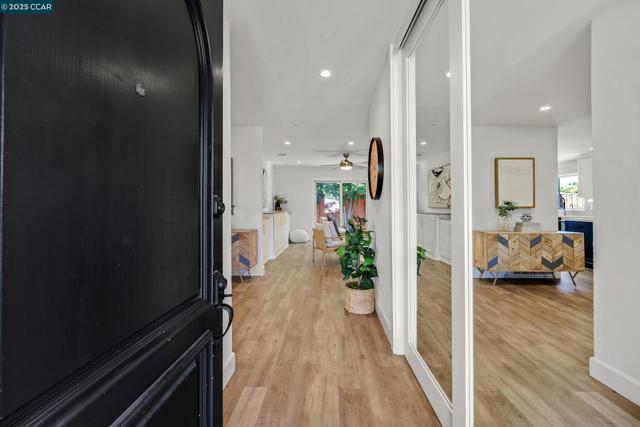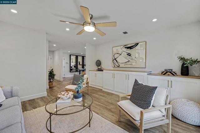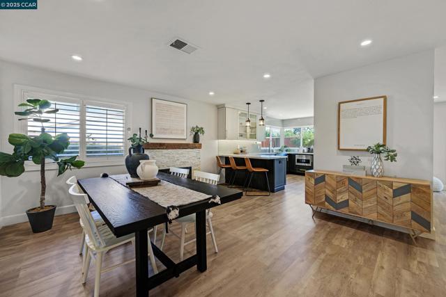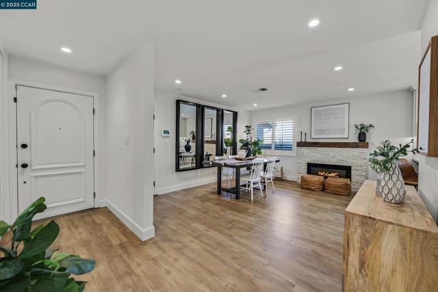 Turnkey perfection in the heart of San Ramon! This impeccably maintained 3-bedroom, 2-bath home offers modern updates, thoughtful upgrades, and timeless charm. The updated kitchen features high end stainless steel appliances, modern cabinetry, gas range, a deep sink and an eat-in peninsula. A modern electric fireplace flows into the dining room and continues into the family room for lots of usability. In addition, both bathrooms were stylishly remodeled in 2025. Luxury vinyl plank flooring extends throughout the main living areas, complemented by hardwood floors in the bedrooms. Major system upgrades include a newer AC, furnace, and tankless water heater, plus fresh attic insulation for year-round efficiency. Section 1 clearance has been completed, giving buyers peace of mind. Outside, enjoy brand new fences, raised garden beds, and a newly seeded front lawn. The northwest-facing orientation captures soft afternoon light helping the house feel light year-round. Just minutes from Pine Valley Middle School, this home blends convenience with comfort in one of San Ramon’s most desirable neighborhoods. With every detail addressed, this is a rare, move-in-ready opportunity you won’t want to miss!