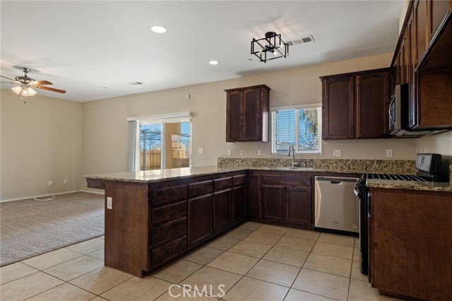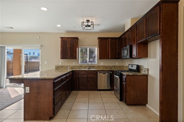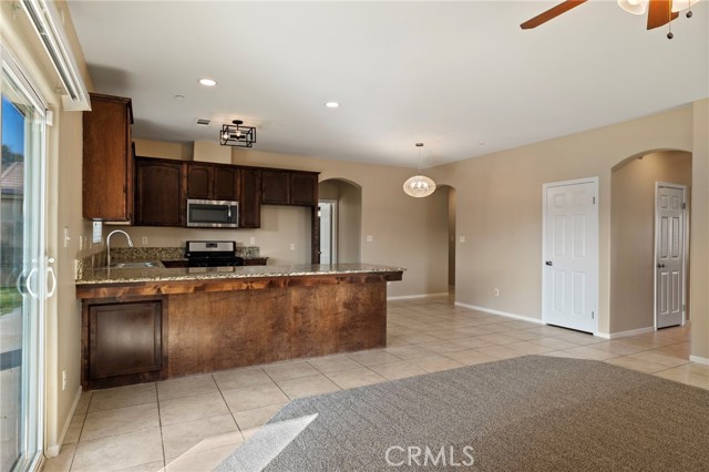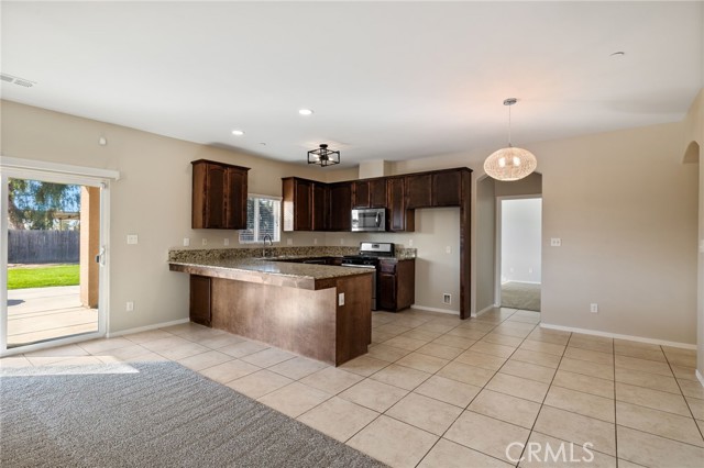 This beautifully refreshed 4-bed, 2-bath home is ready for new owners! Enjoy fresh interior paint and plush carpet throughout. The spacious great room opens to a large kitchen featuring granite counter tops, stainless steel appliances, a breakfast bar, and plenty of cabinet space perfect for entertaining and everyday living. Relax in the private primary suite offering a soaking tub with shower, and a generous walk-in closet. Convenient indoor laundry room with washer/dryer hook-ups. Sitting on a desirable corner lot, the backyard features a covered patio, large grassy area, fire pit, and potential RV parking room for all your toys and gatherings! Don't miss this opportunity clean, move-in ready, and priced to sell!