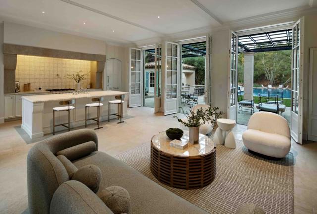 One of Woodside's premier estates, encompassing nearly 10,000 square feet across all structures, this property offers exceptional scale, quality, and lifestyle, highlighted by a classically styled main residence and a brand-new guest house crafted with authentic European detail. The main home is luxuriously appointed across two levels, with nearly every room opening to the outdoors. A state-of-the-art theatre and a temperature-controlled wine cellar are just two of many standout features. The newly completed guest house pairs handmade roof tiles and Genoise eaves inspired by the South of France with state-of-the-art smart home technology. Designed for entertaining, the guest house opens to a new saltwater pool and spa and expansive limestone terrace with a full outdoor kitchen and easy catering access. A 310-vine Cabernet vineyard anchors the south-facing gardens, while heritage olive trees and oaks, a fragrant parterre rose garden, bountiful orchard, and raised vegetable beds enhance the estates agrarian beauty. The result is a property where timeless elegance and refined European living are masterfully expressed in an extraordinary private setting of more than 3 acres with western hill views. Main Residence 6,485 | Guest House 1,505 | Garage One 560 | Garage Two 520 | Gym 560