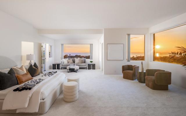 Set on a private corner lot, the property is enveloped by lush, mature landscaping and expansive grassy lawns. The residence features a detached office, ideal for both work and relaxation. The primary suite occupies the entire upper level, providing a serene retreat with sweeping Pacific vistas. This rare opportunity combines unparalleled location, timeless design, and coastal elegance. Watch the waves break & enjoy endless sunsets from this once-in-a-lifetime opportunity from nearly every room.