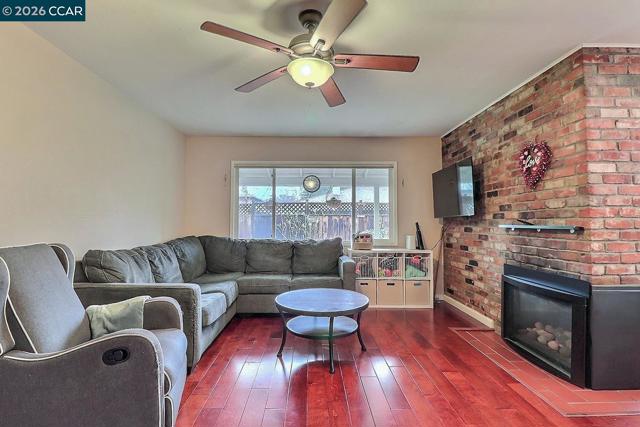 Beautiful Concord home with a brand new sewer lateral and a bright, open layout that flows easily from the living area to the dining space. Large windows fill the home with natural light. Features include wood flooring, dual pane windows, central A/C, ceiling fans, and a gas fireplace for cozy evenings. The kitchen has been updated with wood cabinetry, granite counters, tile backsplash, stainless steel appliances, and a 5-burner gas range. Both bathrooms feature stylish tile finishes and updated shower surrounds. The dining area opens to a generously sized, landscaped backyard, ideal for relaxing and entertaining.