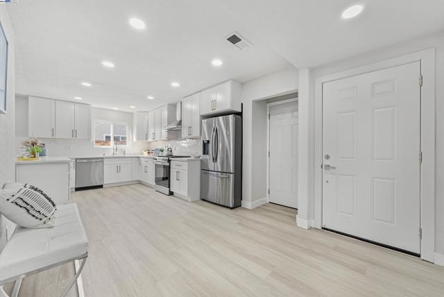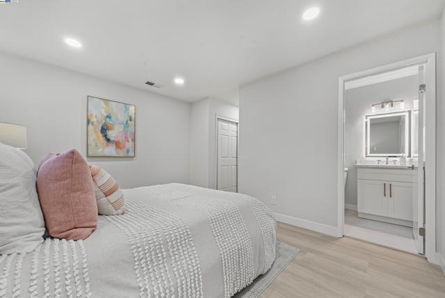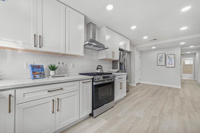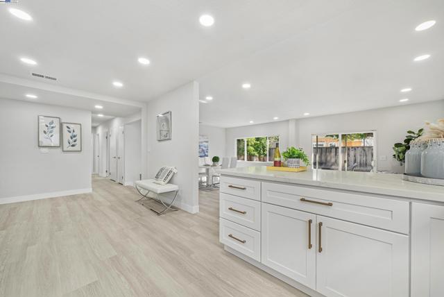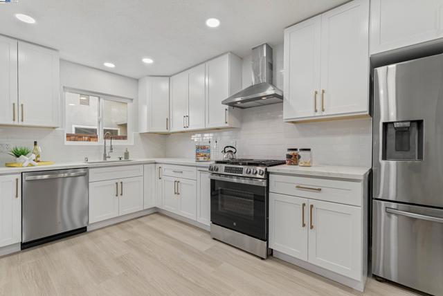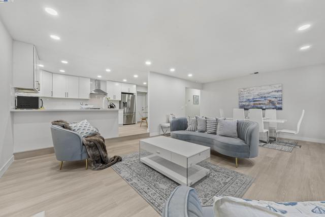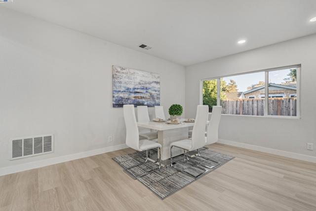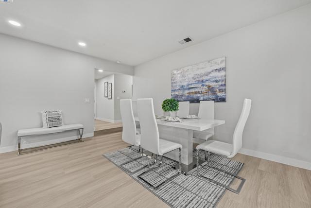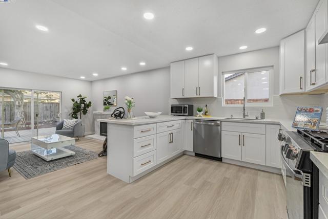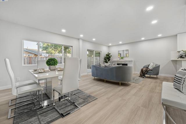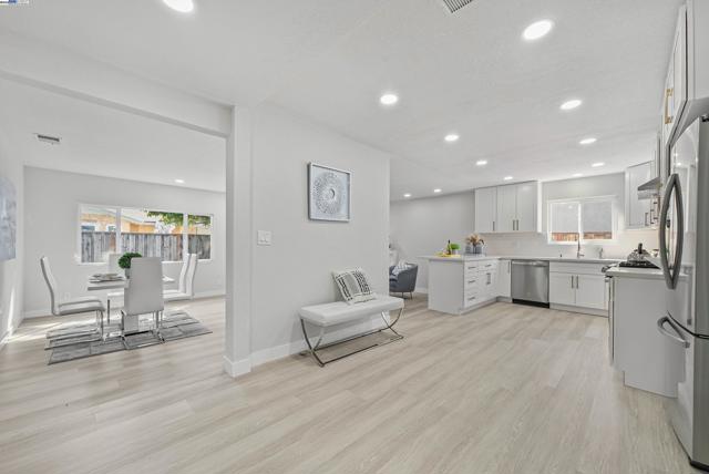 This thoughtfully remodeled open-concept home in the desirable Northgate neighborhood highlights modern design, quality craftsmanship, and attention to detail. Featuring 4 spacious bedrooms, 2 updated bathrooms, and a finished 2-car garage, the residence offers 1,402 sqft of living space on a 7,190 sqft lot. Recent upgrades include fresh interior and exterior paint, luxury vinyl plank flooring throughout, tile flooring in both bathrooms, and 24 new recessed lights. The chef’s kitchen is appointed with quartz countertops, new cabinetry, a full tile backsplash, stainless steel appliances with gas cooktop, and connects seamlessly to the expansive living room and entry hall—ideal for everyday living and entertaining. The landscaped front and rear yards provide inviting outdoor spaces. The large backyard features side access to a concrete parking area and presents excellent potential for an ADU, pool, or private retreat. Located near top-rated schools—Warwick Elementary, Thornton Junior High, and American High—this property also offers easy access to Decoto Road, the Dumbarton Bridge, Union City BART, and I-880 for convenient Bay Area commuting. Combining contemporary upgrades, a functional layout, and a prime location, this home is an exceptional opportunity in Northgate.