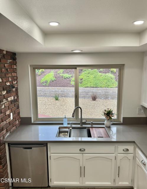'ENRICH YOUR LIFESTYLE ---LOCATION---LOCATION---START FRESH--LIVE BETTER--Welcome to a beautifully upgraded home in one of the most sought-after neighborhoods near -- California Lutheran University -- where comfort, style, and convenience come together. A spacious 4-bedroom, 3-bathroom home offers 2,471 sq ft of living space on a generous 7,840 sq ft lot, complete with a 3-car garage. From the moment you arrive, you're greeted by a charming brick entry and elegant Caramel-colored wood double doors that set the tone for what's inside. Step through the front door to soaring cathedral ceilings and a light-filled interior freshly painted with Dunn-Edward's designer tones with crisp white ceilings and trim creating a warm yet modern aesthetic throughout. Brand-new waterproof flooring flows seamlessly in the home, complimented by new countertops throughout. The kitchen and family room feature new striking modern concrete colored quartz surfaces, while the bathrooms showcase updated quartz white countertops with a refined blue satin finish. The chef's kitchen is thoughtfully designed with a stainless-steel sink, integrated cutting board, vegetable washing tray, and drying rack, along with a sleek five-burner gas cooktop and stainless-steel hood--perfect for both everyday cooking and gatherings. The kitchen open concept flows into the family room which includes a bar counter and a gas fireplace ready for entertaining. The main suite is generously sized, offering a large walk-in closet and a spacious bathroom with dual sinks and a walk down shower tub. The second bathroom upstairs also features dual sinks and a shower-tub combination, the fourth bedroom downstairs provide exceptional flexibility for multi-generational living, complete with its own walk-in closet and en-suite bathroom with dual access--conveniently serving both the bedroom and visitors. Enjoy cozy evenings by either of the two brick hearth gas fireplaces, located in both the living room and family room. Step outside to a beautifully resurfaced backyard patio in a rich mission red tone, surrounded by thoughtfully designed drought-resistant landscaping with native shrubs--perfect for relaxing or entertaining with minimal maintenance. Thistlewood home's location is truly unbeatable. Springfield Park is down the street featuring workout centers, basketball court, fields for soccer, football & baseball, stroller path, playground, creek to catch Crawdads, picnic tables and allows dogs. You're just a short walk to California Lutheran University, including access to public lap pool and public play pool for family and kids. Scenic trails through Mount Clef Ridge--ideal for hiking and mountain biking. Everyday conveniences are also walkable, including Trader Joe's and a variety of popular dining options. With its extensive upgrades, flexible layout, and prime location, this exceptional home offers the perfect blend of lifestyle and livability. --MUST SEE--, Thistlewood won't last long!--