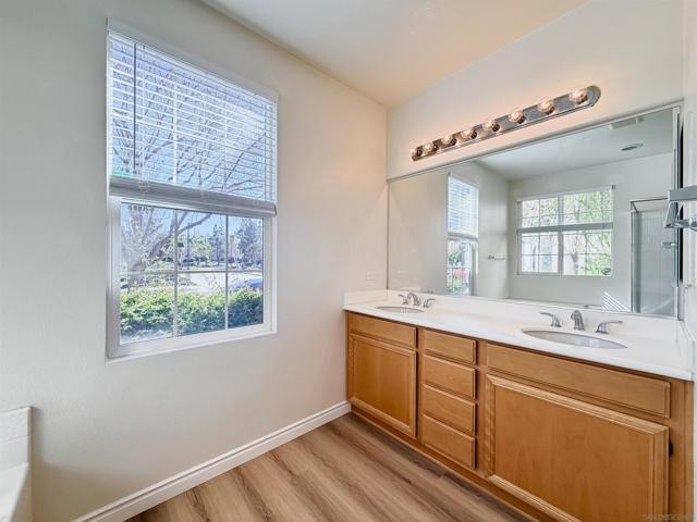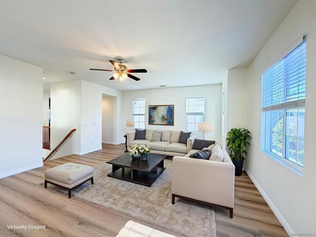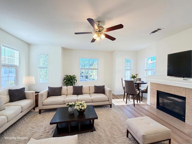 This exquisitely upgraded 3-bedroom, 2.5-bath single-family home offers 2,065 sq ft of sophisticated modern living. An open-concept layout highlights luxury vinyl plank flooring throughout, and a fully remodeled chef’s kitchen appointed with quartz countertops and premium stainless steel appliances—ideal for both refined entertaining and everyday comfort. All three bedrooms are generously sized with the primary suite elegantly situated on the main level. This private retreat features a walk-in wardrobe, dual vanities, and an indulgent deep soaking tub. The upper level presents an expansive family lounge complemented by a built-in office niche, perfect for remote work or study. Bathed in natural light, the home is enhanced by a new A/C system installed in 2022, a two-car attached garage, and owned solar panels for exceptional energy efficiency. Lush front and rear landscaping, including manicured lawns, mature trees, and shrubs, are HOA-maintained at low fees. Enjoy resort-inspired living in the highly desirable Wolf Creek community, featuring pools and spas, a fitness center, clubhouse, outdoor barbecues, and serene park spaces—conveniently located just across the street. Situated within the award-winning Temecula school district, including Great Oak High School, with nearby shopping and effortless I-15 access. Come experience the lifestyle this exceptional home has to offer!
