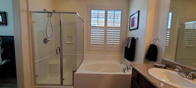Price recently Reduced! Model home single level open floor plan with modern kitchen. The interior is brightly illuminated with natural light with banana plantation widow covers. This design is rarely in the market. Very desirable community, easy access to freeway and shopping area. The backyard is fully paved, additional space for entertainment and big gathering. The SOLAR PANELS are fully paid. This is a "Must See" property and see the convenience of having a single level and open floor plan for modern living. Turn Key condition. PRICE REDUCTION!!!