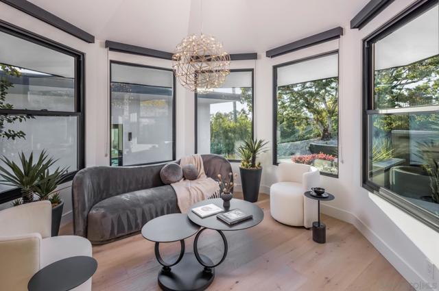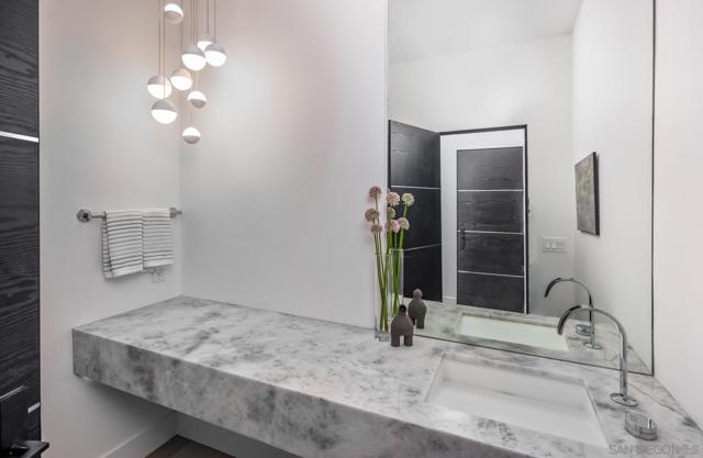 This hilltop home in Carlsbad, California, has been transformed into a breathtaking modern sanctuary. Set on a one-acre lot with sweeping views of the Carlsbad lagoon and Pacific Ocean, the property underwent a comprehensive remodel that blends contemporary elegance with purposeful functionality. Inside, the home features a mix of bespoke elements—from custom sofas and a liquid metal-finished fireplace to thoughtfully curated artwork that highlights local talent. Clever design choices, like a hidden pantry door and a discreet cooking station, bring both practicality and charm to the kitchen. The primary bathroom includes a spa-like wet area, creating a private escape within the home. Outdoors, an infinity-edge pool appears to flow directly into the ocean, while the beautifully landscaped grounds offer a peaceful setting for both relaxation and entertaining. This reimagined residence captures the essence of modern California living, where elevated design meets timeless comfort.