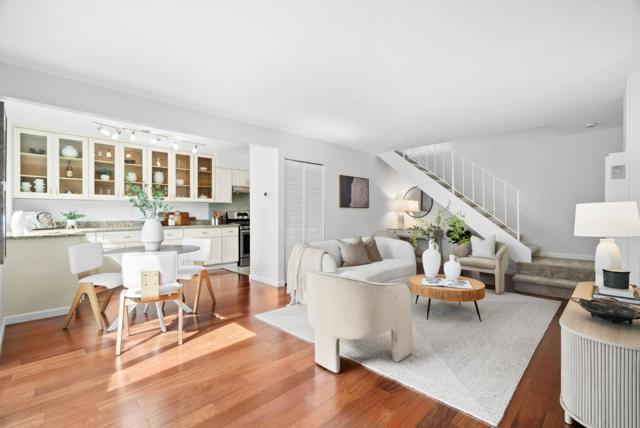 Welcome home! Charming updated 2-story townhouse blends comfort and modern elegance, balancing form and function. Open floor plan on the main level allows the living room, dining area, and the kitchen to flow seamlessly. Spacious 2 BR on the upper level - large primary suite with walk-in closet. Delightful patio provides private outdoor space. Upgrades: In-unit laundry with stack washer & dryer, dual-pane windows & sliding door, new interior doors and closet doors, copper piping and hot water circulator, new carpet, fresh interior designer paint. Assigned 1-car garage parking with nearby dedicated storage closet. Residents have access to community amenities swimming pool, clubhouse, playground. Conveniently located near top schools, restaurants and shops, Light Rail, Silicon Valley employers, and major commute routes.