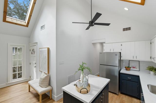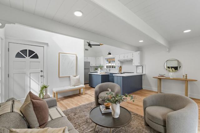 Welcome to this delightful nautical-style beach cottage located in the heart of sunny El Granada. This character-rich 2-bedroom, 1-bathroom home encompasses 850 square feet of modern living space, making it ideal for surfers, young couples, empty nesters, or anyone in search of a charming coastal getaway. Originally constructed in 1962, this open-plan home has been thoughtfully updated with luxury vinyl plank flooring, quartz countertops, a new roof, fresh interior and exterior paint, stainless steel appliances and it provides 400 sqft of storage. The high ceilings in the sunlit living area, combined with recessed lighting, create a bright and airy atmosphere that enhances the home's coastal character and warmth. Step outside to your private rooftop deck, where southwest-facing views of the Pacific Ocean offer stunning sunsets and peaceful mornings with your coffee in hand. Below, you'll find a cozy grassy backyard, ideal for relaxing, gardening, or hosting casual outdoor gatherings. Located just a short walk from Surfers Beach, the Coastal Trail, Pillar Point Harbor, Quarry Park and scenic hiking and mountain biking trails, this home offers the ultimate Half Moon Bay lifestyle. With convenient access to Highway 1, quick commute away from San Francisco, Silicon Valley, and SFO.
