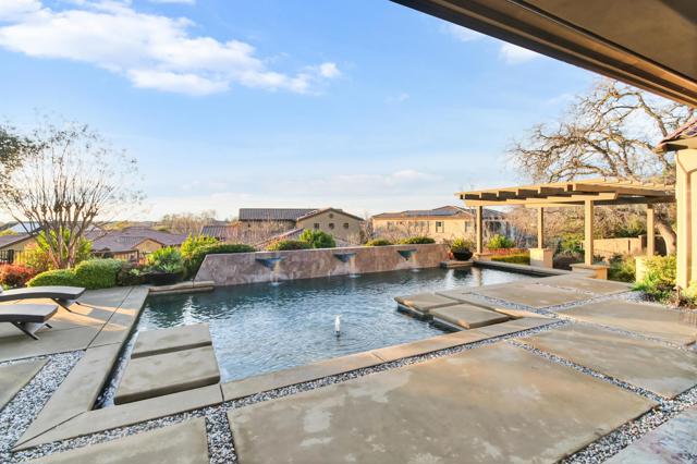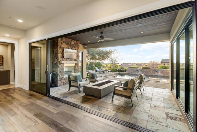 This Luxurious Former Model Home featuring the sought-after Indigo Plan, a TRUE SINGLE-STORY ESTATE offering 4,420 sf of elegant living within the private guard-gated Serrano Golf & Country Club. This fully modernized residence includes 4 bedrooms, 4.5 bathrooms, fireplaces, and a home theater with a sound system. The open floor plan boasts high ceilings, abundant natural light, and oversized patio doors creating seamless indoor-outdoor living. The stunning chef's kitchen is appointed with stainless steel appliances, granite countertops, a professional gas cooktop, expansive center island, custom cabinetry, and two dishwashers, flowing effortlessly into the breakfast nook and formal dining room. A temperature-controlled wine cellar adds a touch of luxury for entertaining. The primary suite is a serene retreat with a spa-inspired ensuite bath. Step outside to a private backyard oasis featuring a pool, foundation, and fully screened covered loggia with fire-pit table. Enjoy the enclosed courtyard, perfect for quiet relaxation. Additional features include owned solar power and a gas generator backup, ensuring comfort and convenience year-round. An exceptional home with so much to offer-come experience it for yourself.