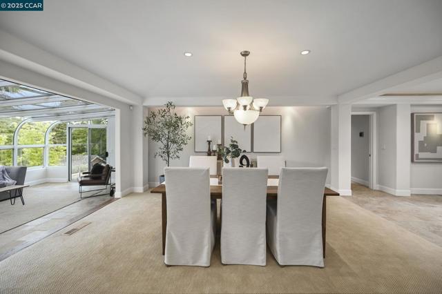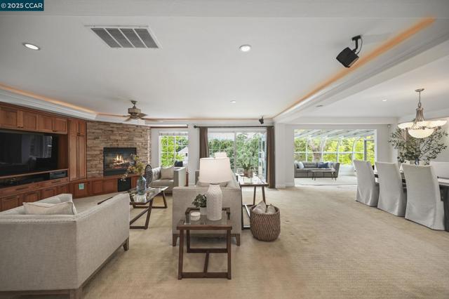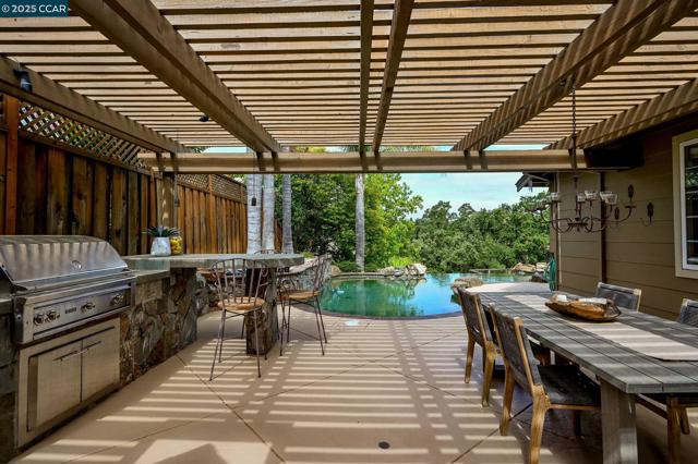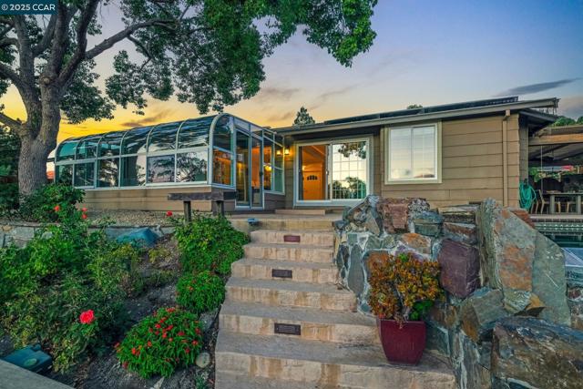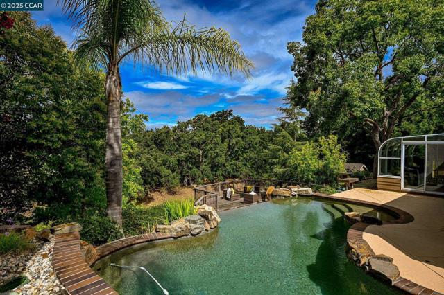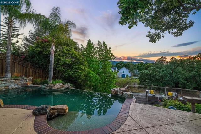 **WOW! Price Adjusted to $2,299,000!** Now is the time to get your DREAM HOME** Modern, Single-Story Masterpiece with breathtaking sunset views and an Infinity Edge Pool in Danville’s coveted Camino Verde Neighborhood. Welcome to a rare, single-story showstopper which backs to the creek below, and is nestled in one of Danville’s most sought-after neighborhoods. Step through the front door and prepare to be wowed: a gorgeous view of the hills, stunning sunset views & sunlit interiors set the tone for sophisticated living. At the heart of the home is a chef’s dream kitchen: a sleek, custom culinary space outfitted with top-of-the-line appliances, a spacious pantry, generous prep zones, with an enormous island. There is a seamless indoor-outdoor lifestyle and an entertainer’s paradise. Outside, the backyard stuns with a resort-style infinity edge pool with waterfall, outdoor kitchen, cozy fireplace & multiple relaxation zones perfect for sunset dinners or weekend gatherings. There is a detached outdoor office/flex space with electricity. The home’s atrium invites natural light year-round, enhancing peace & tranquility. Owned Solar Panels for low PG&E bills.