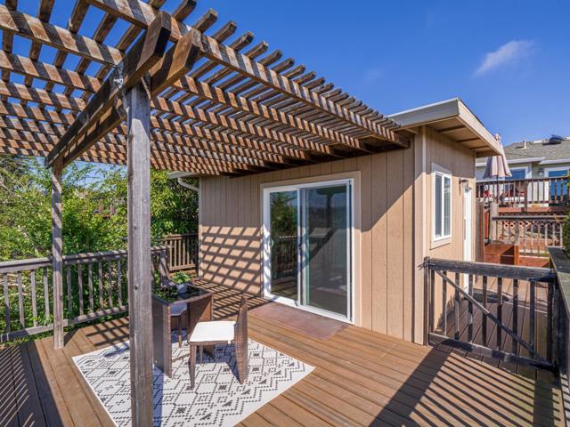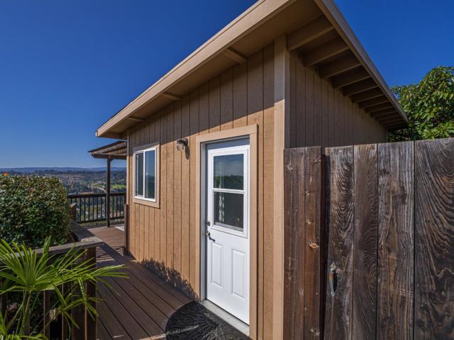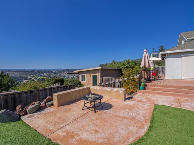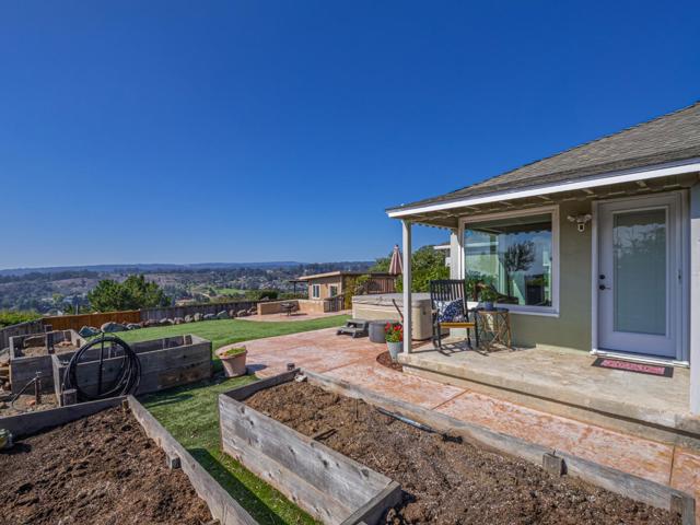 Beautiful Views-Ocean, Mountains & City Lights found in Soquel, high on the hill, this fifties bungalow home has been a generational home for decades. It has been loved, remodeled, and increased in size over time, creating an up to date 4 bedroom, 2.5 bathroom, 2051 sq. ft. There is an efficiently designed kitchen with ample storage and ample counter space, stainless steel appliances and a pantry. You will love the hardwood floors in the living room and dining room that has a one-of-a-kind light fixture by Johnson Art. Second story addition has good separation for sharing possibilities, two bedrooms and a bathroom with some nice views too. Primary suite is on the ground level accessible to the outside deck to enjoy the ocean views. The primary bathroom has a luxurious tub, splash-proof shower stall, double sinks, and with natural light provided by a glass brick window. For your outdoor enjoyment; two decks, stamped concrete patio, a spa, raised garden beds, a producing avocado tree & lemon tree, RV hookups, and two outbuildings; one is extra storage and one is an amazing art studio with a private deck. All windows are dual-paned with new doors, custom shades, and automatic sunscreens installed on select windows. This is a great property and a must see!