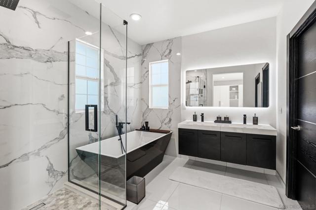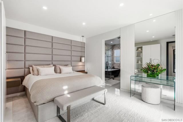 A showpiece of modern luxury with a Private Saltwater Pool, this fully reimagined residence is tucked on a private corner cul-de-sac in the prestigious La Costa community of Carlsbad. Designed for elevated living and effortless entertaining, the home offers three spacious en-suite bedrooms plus a versatile loft, playroom, and additional den ideal for a home office, gym, or media lounge. At the heart of the home, the designer chef’s kitchen features a dramatic stone waterfall island, sleek custom cabinetry, and premium black-finish appliances. Sophisticated materials and architectural details carry throughout, including imported Italian tile and striking Brazilian granite feature walls that create a refined, contemporary aesthetic. The spa-inspired primary suite offers a serene retreat with a deep soaking tub and luxurious finishes. Outdoors, a tranquil resort-style backyard awaits with a sparkling pool and beautifully designed spaces for relaxing or entertaining. Additional highlights include Owned Solar, a custom wine cellar, and fully integrated sound and security systems delivering a rare blend of modern design, privacy, and technology. Ideally located in Carlsbad within a private enclave of just 53 homes, this sophisticated coastal residence offers the best of North County living just minutes from the beach, world-class golf, dining, and shopping. Luxury modern pool home in the highly sought-after La Costa community in Carlsbad, one of North County San Diego’s premier coastal cities known for its beaches, golf, lifestyle, and top-rated schools. Ideally located just minutes from Carlsbad Village, Batiquitos Lagoon, and the beaches along the Carlsbad State Beach, this home offers the best of coastal Southern California living. Residents enjoy close proximity to championship golf at Omni La Costa Resort & Spa, scenic hiking and biking trails, upscale dining, boutique shopping, and convenient access to major tech and biotech employment hubs throughout North County. The fully remodeled residence features 3 en-suite bedrooms plus a loft, playroom, and additional den, offering exceptional flexibility for modern living. The designer chef’s kitchen showcases a striking waterfall island, custom cabinetry, and high-end black finish appliances. Luxury materials including Italian tile and Brazilian granite feature walls elevate the home’s contemporary design. The spa-inspired primary suite offers a deep soaking tub and serene retreat. Outdoors, a private resort-style backyard features a pool, spa, and beautifully designed entertaining areas. Additional highlights include whole-house solar, wine cellar, and integrated sound and security systems. An exceptional opportunity to own a turnkey luxury home in one of Carlsbad’s most desirable coastal communities.
