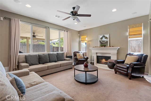 Stunning Beaumont home located on a private cul-de-sac in the highly desirable Fairway Canyon Community! Premium 7,400 Sq Ft Lot - Enjoy privacy with no front or rear neighbors! This beautifully landscaped lot features mature olive, fantasy maple, pomegranate, and apple trees that produce fruit. Relax or entertain under the covered patio with ceiling fan, indoor/outdoor surround sound, and a cozy built-in firepit. Perfect for evening gatherings just steps from your kitchen. Spacious 3-Car Tandem Garage - Ample room for your vehicles, storage, or home gym setup! Gourmet Kitchen & Elegant Interiors - Inside, you’ll find a beautifully upgraded kitchen with stainless steel appliances, a Family Room, Living Room, and a Formal Dining Room — all designed with comfort and style in mind. The home also includes two fireplaces (one gas, one electric) both with blowers for added warmth and ambiance. Luxurious Primary Suite - The spacious primary bedroom features a soaking tub, walk-in shower, and his & hers closets for added convenience. Dedicated Laundry Room - Located just off the garage with abundant cabinet space for ultimate functionality. Resort-Style Community Amenities - As a resident of Fairway Canyon, you’ll enjoy: 1 Gig Fiberoptic Internet - Two reservable banquet halls - Four parks Clubhouse & fitness center - Two swimming pools - Members lounge - Plus, you're minutes away from Morongo Golf Club and Mickelson Park, which features walking trails, zip-lining, and more outdoor fun