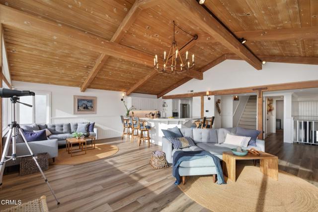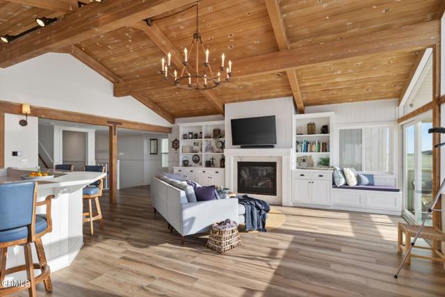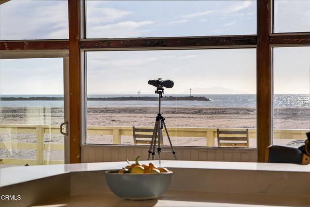 OCEANFRONT LIVING, home on Hollywood Beach -- Just North of Malibu and South of Santa BarbaraWelcome to your beachfront escape, where panoramic ocean views greet you from nearly every room. Perfectly positioned directly on the sand, this three-story coastal residence blends modern comfort with timeless East Coast-inspired design, offering a rare combination of style, space, and effortless beach access. Offered completely furnished, this is a true turnkey opportunity -- simply arrive and begin enjoying the beach lifestyle.The first level is designed for relaxed seaside living and entertaining, featuring a private guest suite, full bath, and a spacious family room anchored by a cozy fireplace. A kitchenette with a mini refrigerator and sink makes hosting easy, while custom built-in sleeping bunks create the ultimate kids' sleepover retreat. Sliding doors open directly to the beachfront patio -- ideal for morning coffee, sunset gatherings, and evenings filled with family fun.The main living level is bright and open, showcasing soaring vaulted wood-beam ceilings, a dramatic wall of windows, and expansive living and dining spaces that frame endless ocean views. A second fireplace adds warmth and architectural character to the ocean-view living room. The spacious kitchen features double ovens, a built-in microwave, generous prep space, and direct deck access for seamless indoor-outdoor entertaining. A flexible bonus room and powder bath add convenience, while a well-appointed second-level laundry room enhances everyday functionality.Upstairs, the primary suite and guest bedroom both showcase unobstructed water views and en-suite baths. The primary retreat features a walk-in closet, custom built-ins, and a skylight, creating a private sanctuary that captures the peaceful rhythm of oceanfront living. Complete with a two-car garage equipped with a Tesla charging station, and direct beach access just steps from your door, this exceptional residence offers the ultimate Hollywood Beach lifestyle -- wake to the sound of waves, spend your days on the sand, and end each evening with breathtaking sunsets right outside your door. Walk to local Farmers Market, eateries, pubs and concerts in the park, live where you always feel like you're on vacation.