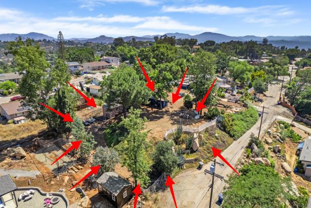 DO NOT TRESPASS OR JUMP FENCE. The mountain community of CREST is in the city limits of El Cajon, 92021 and only about 8 minutes from Greenfield and I-8. We consider this the last set of vacant lots up on Lento Lane that have panoramic south and southwestern views. Purchased years ago as a family investment, these two lots are now offered for sale together. Please see the aerial title company photos with the lots lines. Both lots are offered for $159,000. The properties are fenced and gated on three sides. No trespassing onto neighboring properties to access, please. The history of the property is unknown, there are no utilities to the property, but it's almost 10,000 square feet of land with most of it on the higher, flat portion. What amazing breezes! There are small outbuildings are on each side of the upper lot line. We believe one blue building belongs to the neighbors and we believe two pink vintage horse buildings and one blue building belong to our lots. Any red arrows in photos are general guidance and the seller makes no guarantees. Buildability is unknown. There are lovely single family homes on both sides. Buyer to satisfy her or himself with all City or County building restrictions, if any. This is fabulous country with charming outbuildings and history coming from the whispers of every tree, every breeze, every sunset. Crest is one of San Diego's best secrets.