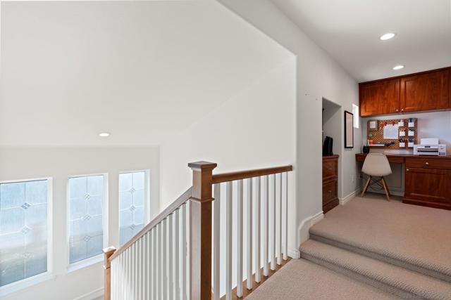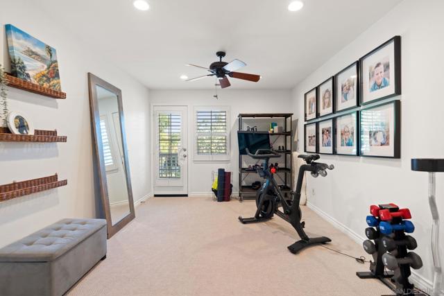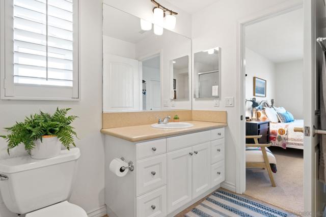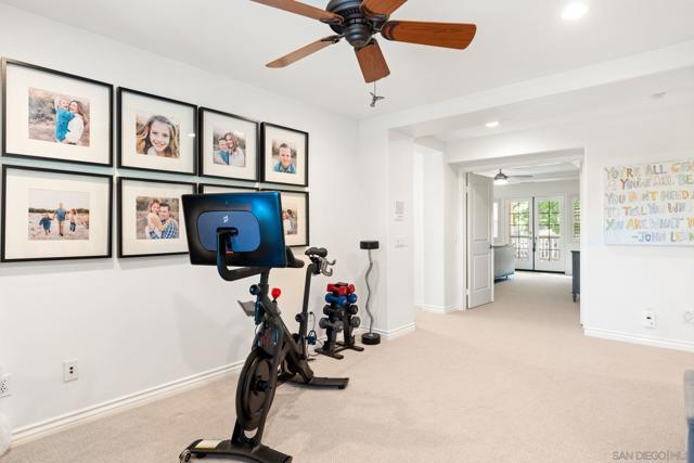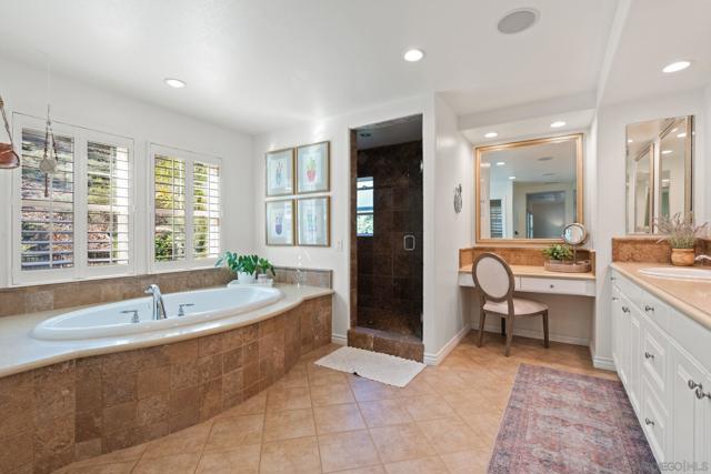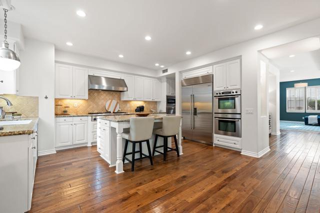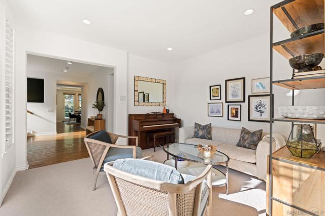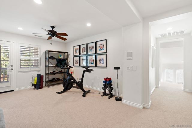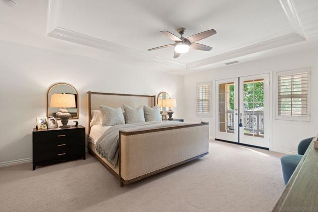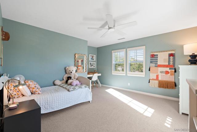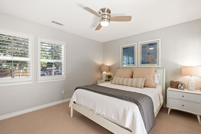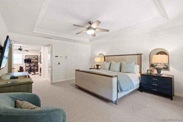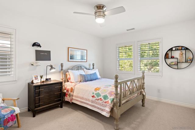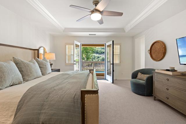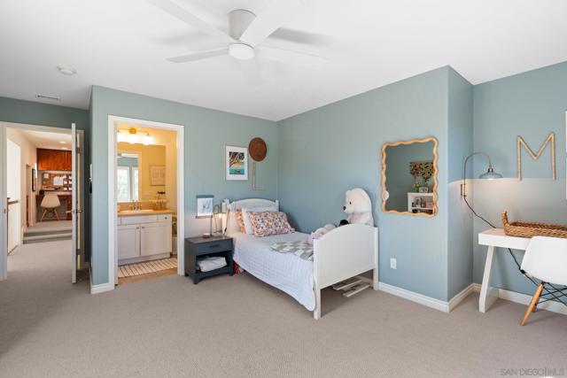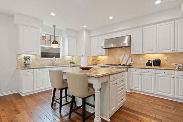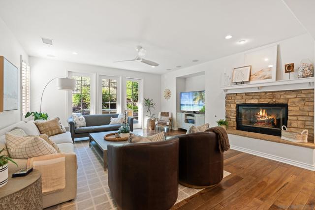 Refined California living meets everyday comfort in this beautifully upgraded La Costa Oaks home ENCINITAS SCHOOL DISTRICT. A private entry-level suite with its own living area and separate entrance offers potential as a full ADU ideal for guests or multigenerational living. The flexible floor plan includes two ensuite bedrooms upstairs, including a serene primary retreat with balcony, plus an optional bedroom or bonus space. The chef’s kitchen features Sub-Zero and Thermador appliances, granite counters, walk-in pantry, and large center island. Light-filled interiors, French doors, and owned solar enhance both style and efficiency. Enjoy seamless indoor-outdoor living with a built-in BBQ, fire pit, and peaceful yard. Bonus rooms offer space for a gym, office, or playroom. Walk to clubhouse, shops, dining, grocery, and cinema. Trails out your back door and minutes to beaches, golf, resorts, and top Encinitas schools.