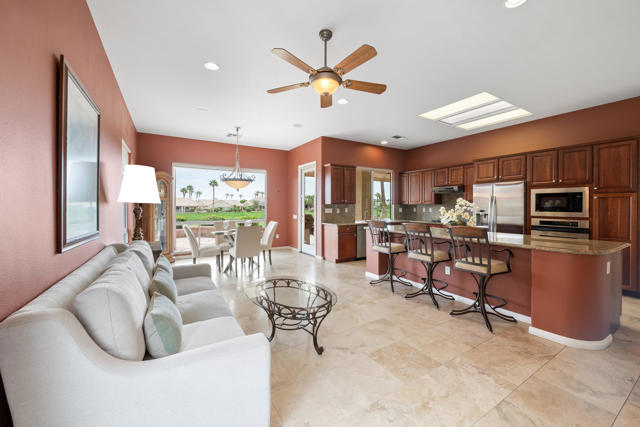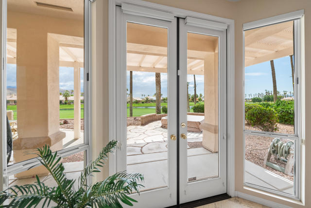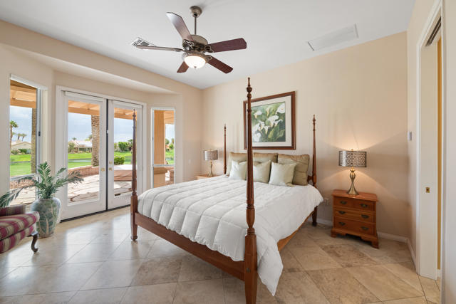 Impeccably Maintained! Location! and Amazing Views! Estate Monaco Model elevated over #9 of the San Gorgonio Golf Course. Located near the Lakeview Clubhouse. Soon as you enter you're welcomed by stunning mountains and lake views. The formal great room has abundant windows and french door that lead to an expansive covered patio lined with custom pavers. High ceilings, travertine floors and Hunter Douglas Silhouette and solar shades are through-out. The Large chefs island kitchen is excellent for entertaining and has granite slab countertops & backsplash, rich dark cabinetry with pull-outs, newer stainless appliances, a large pantry, and water purifier and is shared with a large family room with built-in media center and a dining nook. The primary suite also has french doors to the patio & hot tub that looks out over dual lakes, the bath has dual vanities, linen closet, a large oval soaking tub, step in shower and large walk-in closet with mirrored doors. The guest on-suite is extended with private bath and step-in shower. Dual zone HVAC systems were replaced 2017. Bradford & White Water heater with circulating pump 2020. Some furnishing are available.
