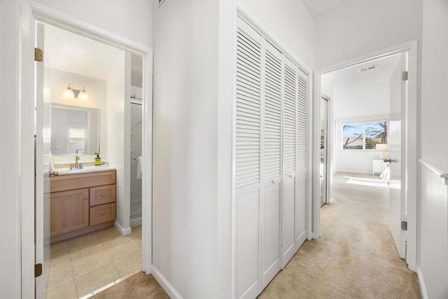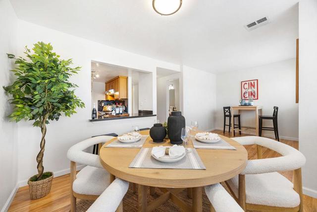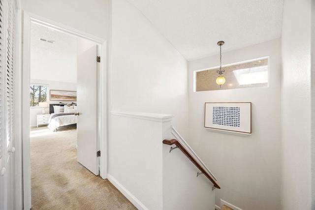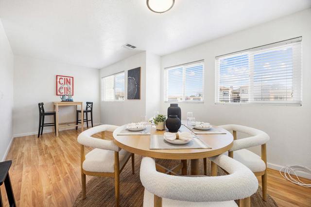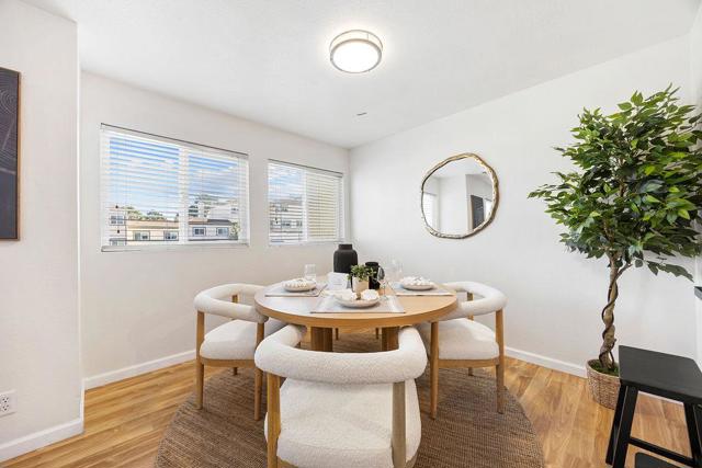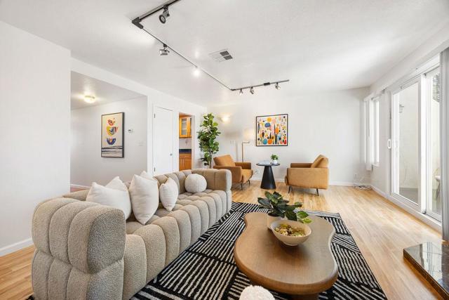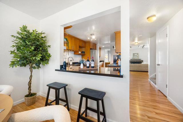 Tucked within the sought-after Skyline Village community, this beautifully designed townhouse-style condo offers 1,644 sq ft with 3 bedrooms, 2.5 bathrooms, and a layout that balances comfort, style, and versatility. Inside, rich hardwood floors and a warm fireplace anchor the spacious living room, filled with natural light and opening to a private balconyperfect for morning coffee or evening relaxation. A pantry hallway leads to a bright kitchen overlooking the dining area, featuring stainless steel appliances, ample cabinetry, and generous prep space. A versatile den is ideal for a home office or flex space, and a convenient half bath completes the main level. Upstairs, plush carpeting runs throughout three well-sized bedrooms. The primary suite includes dual mirrored closets, a private balcony, and an ensuite bath with double vanity. A separate exterior entrance offers potential for a private studio or rental income. Two additional bedrooms and a full bath provide flexibility for family or guests. The home also includes in-unit laundry and a one-car garage. Ideally located near shopping, dining, parks, and coastal trails, with easy access to major highways, SFO, and BART for effortless commuting.