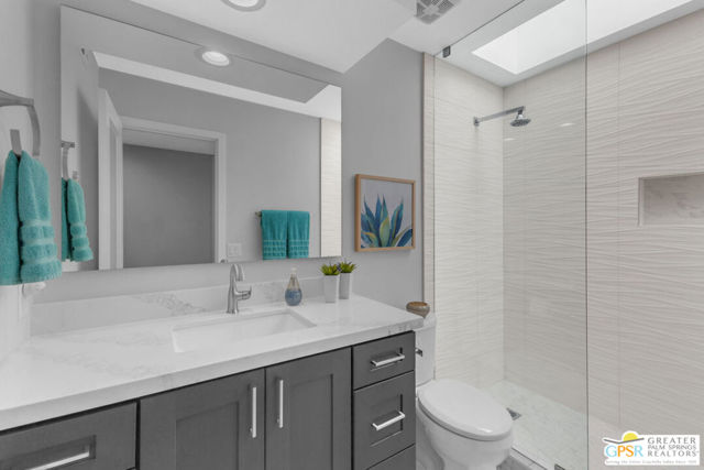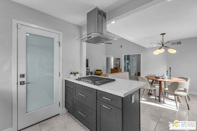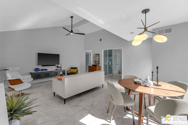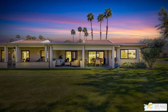 Welcome to easy, elevated desert living, where everything has already been done for you and all that's left is to move in and enjoy. This exceptional 2-bedroom, 2-bath end-unit condo in the desirable Cathedral Canyon Country Club offers refined single-level living with a level of finish and care rarely found in the community. Vaulted ceilings and an open layout create a light, airy feel that lives larger than expected and feels immediately welcoming. Fully remodeled down to the studs, this residence lives and feels like newer construction, an increasingly rare offering in this price point and location. Tile flooring runs throughout for seamless continuity, while the custom kitchen is both elegant and functional, featuring quartz countertops, stainless steel appliances, and custom cabinetry. Major systems have been thoughtfully updated, including newer windows, HVAC, and water heater, offering true low-maintenance living and peace of mind. The private patio has been transformed into a true second living space, designed for year-round enjoyment with an Alumawood cover, retractable shades, and a commercial-grade misting system. It opens to a lush greenbelt with views of citrus trees, creating a serene and private outdoor setting. Additional highlights include a 2-car attached garage with epoxy flooring. Furnishings are negotiable outside of escrow. Cathedral Canyon Country Club is a gated community known for its welcoming atmosphere and resort-style amenities, including pools, spas, tennis, and golf. The HOA offers exceptional value, covering the exterior, roof, and cable/internet, making ownership simple and streamlined. Centrally located near Palm Springs, shopping, dining, and entertainment, this is a home that truly stands apart, both in quality and livability, and is best experienced in person. Schedule your showing today!