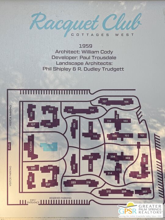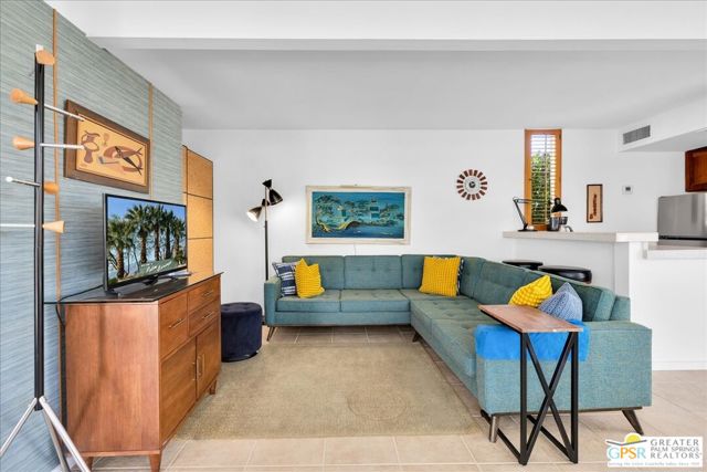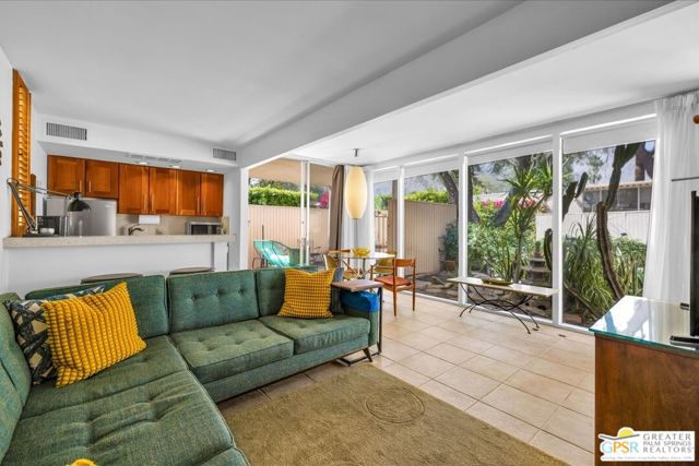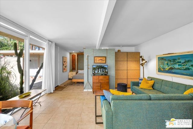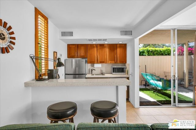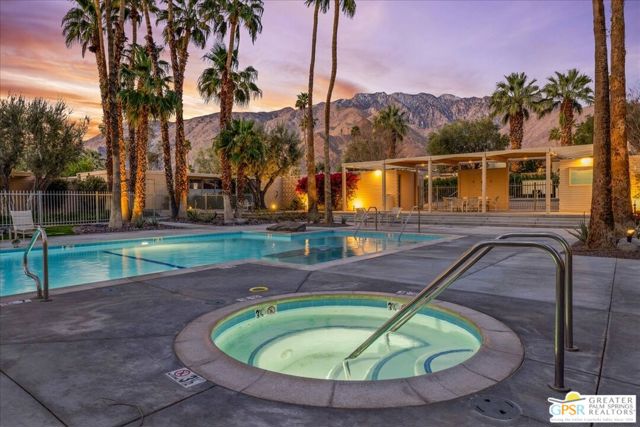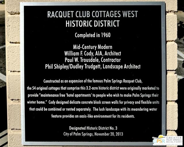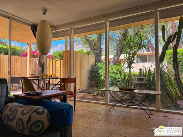 ULTIMATE MIDCENTURY MODERN PIED-A-TERRE | WILLIAM F. CODY ARCHITECTURE | YOU OWN THE LAND | PRIVATE GARDEN & MOUNTAIN VIEWS | MOVE-IN READY rare opportunity to own a historically significant residence in the prestigious Racquet Club Cottages West (Garden Villas). Designed by world-renowned architect William F. Cody and developed by Paul Trousdale, this Class 1 Historic District property offers the ultimate Palm Springs luxury lifestyle for the sophisticated design enthusiast. UNRIVALED PRIVACY & OUTDOOR LIVING: Unit 220 is a "unicorn" studio within the complex, boasting an expansive, private back patio and landscaped garden (grandfathered-in) that no other studio offers. Enjoy breathtaking, panoramic San Jacinto Mountain views and a direct line of sight to the Palm Springs Aerial Tramway. The wrap around outdoor space and lush tree canopy creates a secluded sanctuary perfect for indoor-outdoor living and entertaining under the desert stars. DESIGNER INTERIOR & LUXE UPGRADES: Architectural Pedigree: Classic post-and-beam construction with walls of glass and newer tempered sliders that dissolve the boundary between architecture and nature. Modernized Systems: High-efficiency HVAC (resealed 2021), 5-year-old water heater, and updated stainless appliances (refrigerator/dishwasher, about 4 years old). Spa-Inspired Bath: Fully remodeled with a private, dedicated sewer line (not shared) for peace of mind. Flexible Floor Plan: Thoughtfully expanded living area includes a high-quality Murphy Bed, creating a seamless, open-concept space for yoga, meditation, or a professional home office. PRESTIGIOUS GATED COMMUNITY & INVESTMENT: FEE LAND: You own the land. MILLS ACT: Eligible for massive property tax savings (potentially 30%70% off). SHORT-TERM RENTAL: Rare 14-day rental eligibility makes this a prime investment opportunity; the shorter minimum stay typically yields a much higher nightly rate and greater annual ROI than properties restricted to 30-day stays (Buyer to verify). RESORT AMENITIES: Iconic 9-foot-deep pool and spa (restored 2022), lush grounds by Phil Shipley, and historic stream features. HOA COVERS: Water, trash, roof, exterior maintenance, and full-time landscaping. LOCATION & LIFESTYLE: Boasting high walkability to the trendy Uptown Design District, you are steps from world-class fine dining, galleries, and boutiques. A perennial Modernism Week favorite and a true "collectible" property for the Atomic Ranch or Dwell reader. Includes assigned one covered carport parking (#12). PET FRIENDLY.