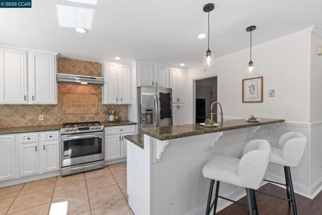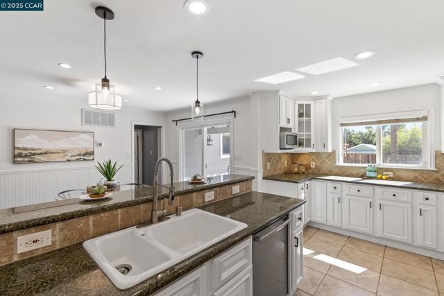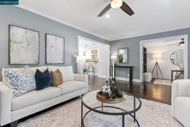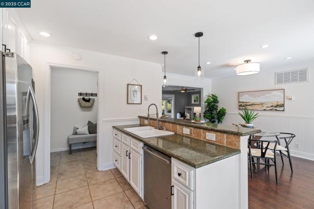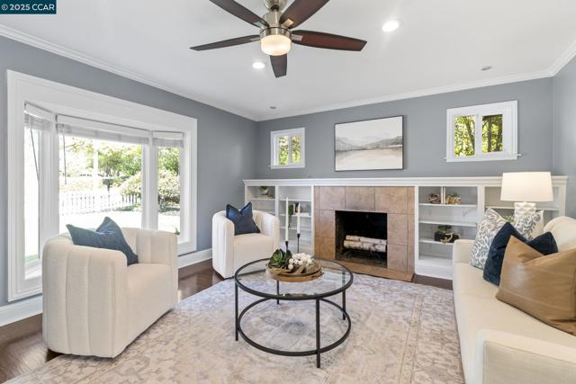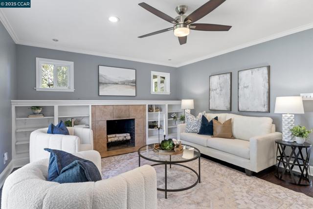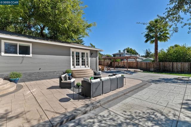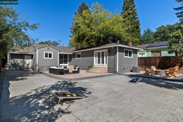 Welcome to this storybook single-story home, full of charm and character. Boasting 4 bedrooms and 2 full bathrooms, this beautifully updated residence is just what you’ve been looking for. Step into the inviting living room, featuring a cozy fireplace surrounded by built-in display cabinets and a picturesque bay window. The kitchen shines with freshly painted white cabinets, granite countertops, a tiled backsplash, and stainless steel appliances. An open floor plan seamlessly connects the kitchen to the dining room—perfect for both everyday living and entertaining. Through the sliding glass door, enjoy the spacious backyard complete with stamped concrete, a fire pit, grass area, market string lights, and a gazebo—ideal for any outdoor activities. The primary suite offers direct access to the yard through French doors, mirrored closet, and abundant natural light. Three additional bedrooms provide flexibility for family, guests, or a home office. Additional highlights include a deep one-car garage, a large driveway, fresh paint in the kitchen, dining room, and fourth bedroom, plus new landscaping and sod. Conveniently located near K–12 schools, BART, shopping, downtown Concord, parks, and more—this home truly has it all!