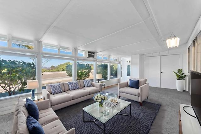 Welcome to this quiet and relaxing single story, with views in the 55+ Oceana Community. This home offers 3 bedrooms, 2 baths, includes bonus bedroom can be used as an additional office, and/or game room. This home is spacious, light and bright, has high ceilings and an open feel. Remodeled kitchen and ADA bathroom; new paint in the front bedroom/office & newer HVAC, new carpet as well. Washer/Dryer/Refrigerator and microwave included. One car detached garage G included. Rec Center includes two swimming pools, two pickleball courts, exercise room. The HOA pays basic cable TV, water trash, and landscaping maintenance. Welcome to beautiful Oceana!!