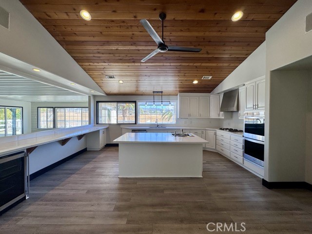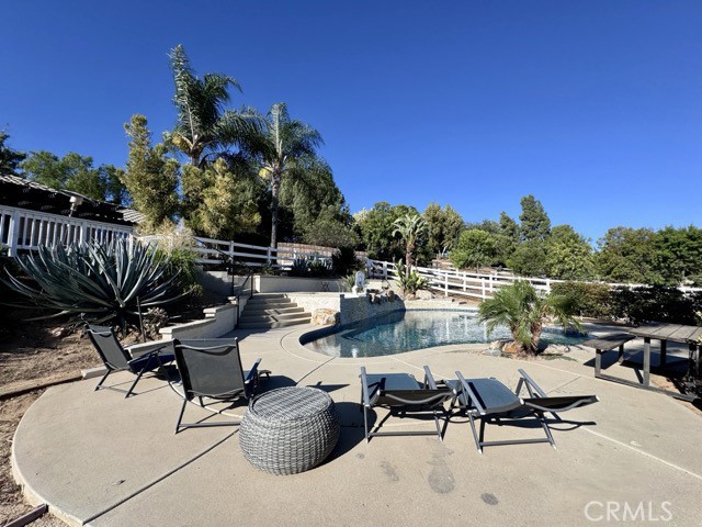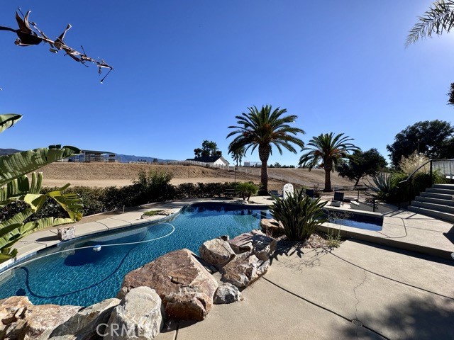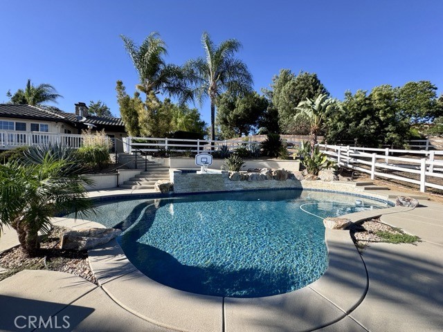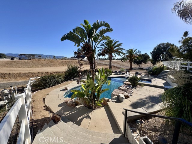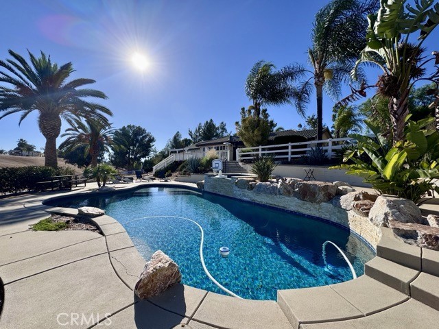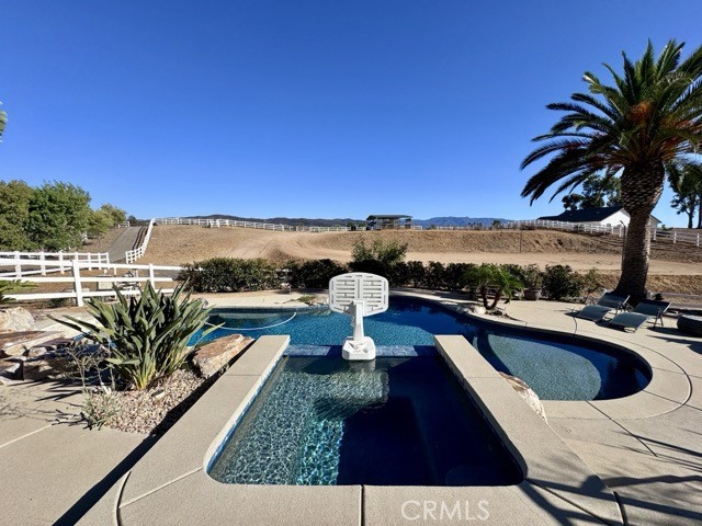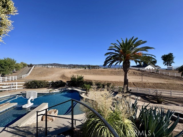 This expansive 3 bedroom, 3 bathroom estate perfectly blends luxury and country living in the heart of Temecula’s Wine Country. Set on nearly 2.5 acres, the property offers a resort-style Pebble-Tec pool and spa, 4 horse stables, a large patio deck, and a 4 car garage, designed to deliver both relaxation and entertainment. The long, tree-lined driveway makes a striking first impression. Enter inside to find plank flooring, abundant natural light, and stunning upgrades throughout. The chef’s kitchen is a true centerpiece with quartz countertops, a custom wood ceiling, stainless steel appliances, ample storage, and generous prep space. Seamlessly opening to the family room and dining area, it creates the ideal setting for gatherings. Just off the kitchen, the laundry room comes equipped with a washer, dryer, sink, and extra storage for added convenience. Down the hallway, spacious secondary bedrooms and updated bathrooms provide comfort and style, along with direct garage access. The primary suite, located just off the entry, is a private retreat complete with a cozy fireplace, sitting area, dual sliding doors leading to the backyard, and a spa-like ensuite featuring a freestanding soaking tub, walk-in shower, dual vanities, and a large custom walk-in closet. Outdoors, the property transforms into a private oasis. Relax on the covered porch, gather around the firepit, or lounge poolside while taking in the serene surroundings. Landscaping with quarterly weed abatement and pool service are both included. Horses are welcome and encouraged with facilities and a trailer hookup pad available for use in “as-is” condition if accessible from the main driveway. Please note that the second and third gates along Via Broza are restricted due to easement limitations, residents must use the main entrance. Surrounded by Temeculas wineries, top rated schools, and just a short drive to shopping, dining, and parks. Dont miss your opportunity, schedule your private showing today!