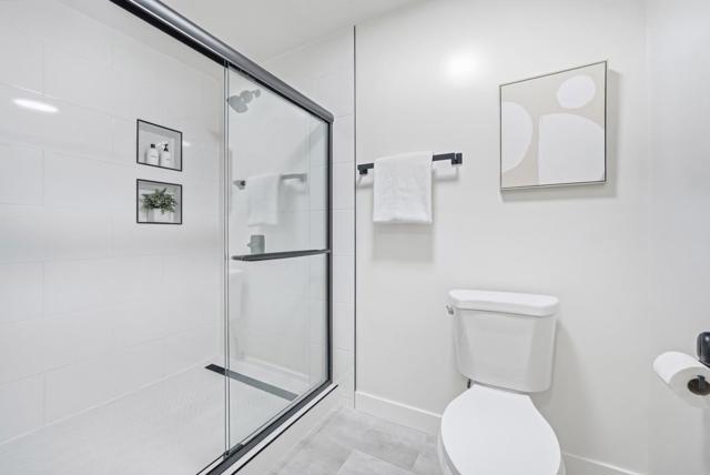 Stunning End-Unit with Private entrance in the prestigious Miramar Terrace gated community! Fully remodeled in 2021, this bright and spacious home features an open living/dining area with high ceilings and tons of natural light, leading to a large private balcony. The remodeled kitchen boasts quartz countertops, beautiful backsplash, white shaker cabinets, and SS appliances. Bathrooms are upgraded with sleek fixtures, quartz counters, and designer tile. The Expansive master suite offers vaulted ceiling, dual closets, and dual-sink vanity. Second bedroom includes walk-in closet. Additional highlights include recessed lighting, plantation shutters, central A/C, in-unit laundry, and extra storage unit. Two parking spaces plus ample guest parking. HOA covers water, gated entry, security patrols, garbage, gas, and amenities including pool, spa, clubhouse, sauna, and gym. Ideally located in the heart of Santa Clara near Santana Row, Valley Fair, Nob Hill, Ponderosa/Eklund parks, restaurants, and major tech companies.